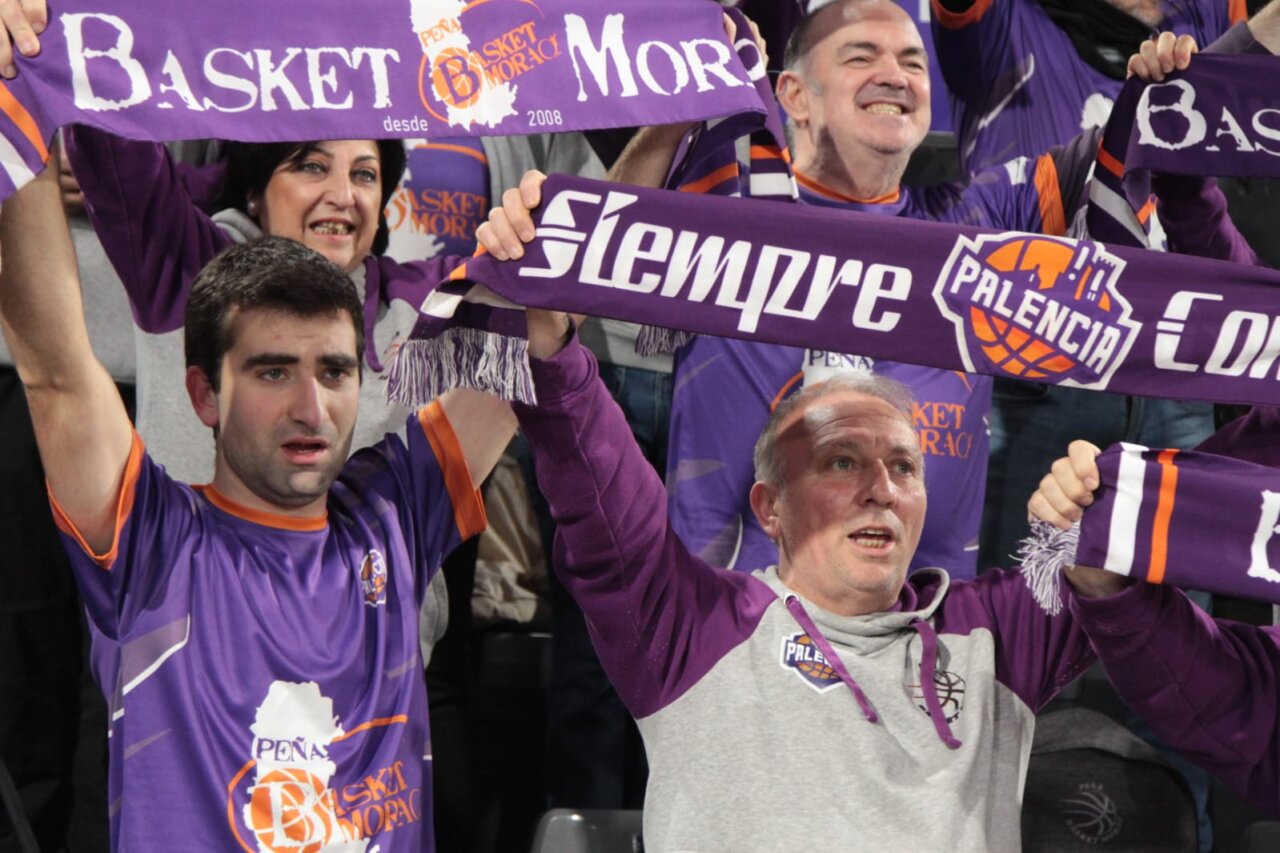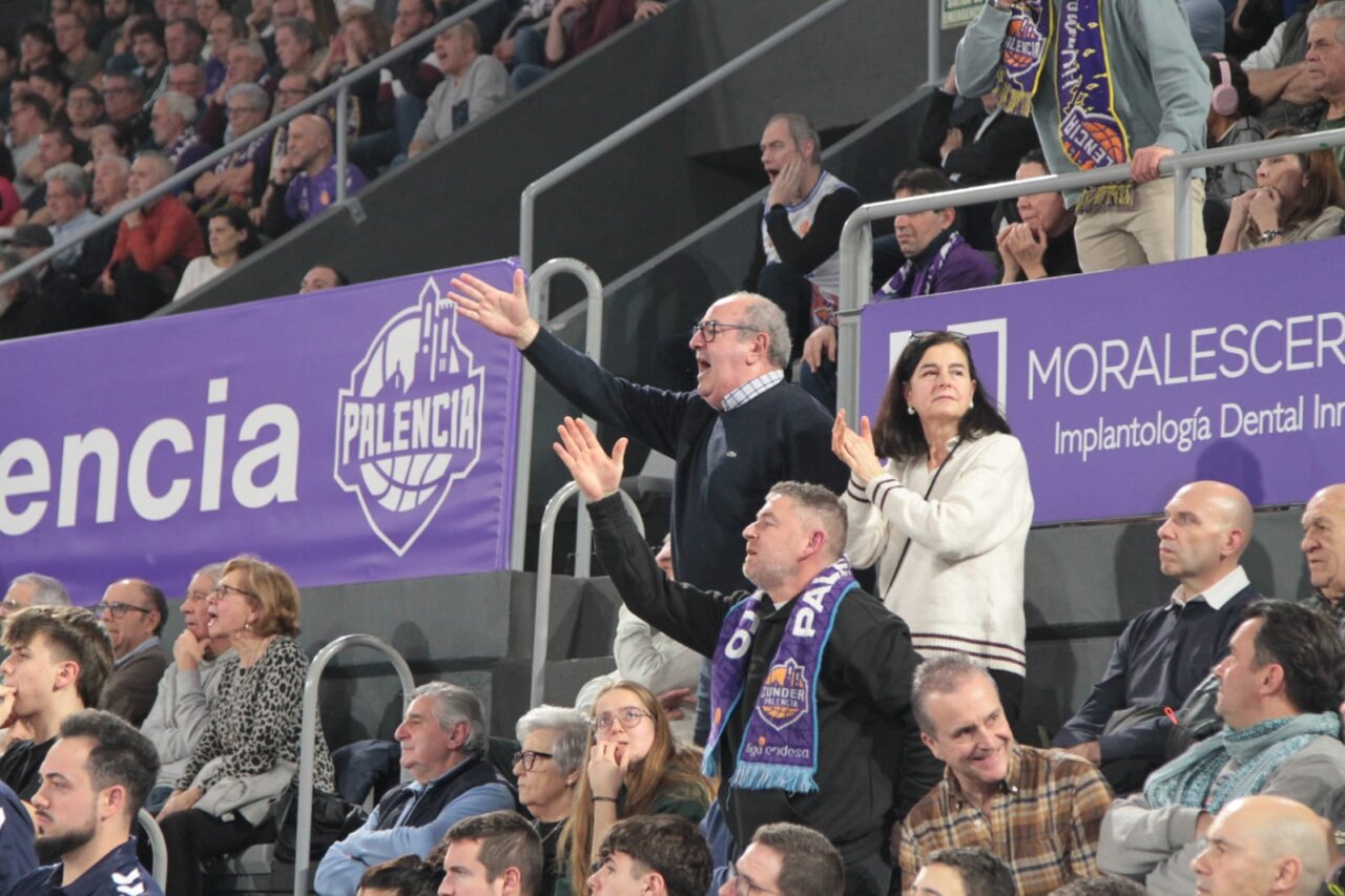 Aficionados animando al equipo de baloncesto en el pabellón de Palencia