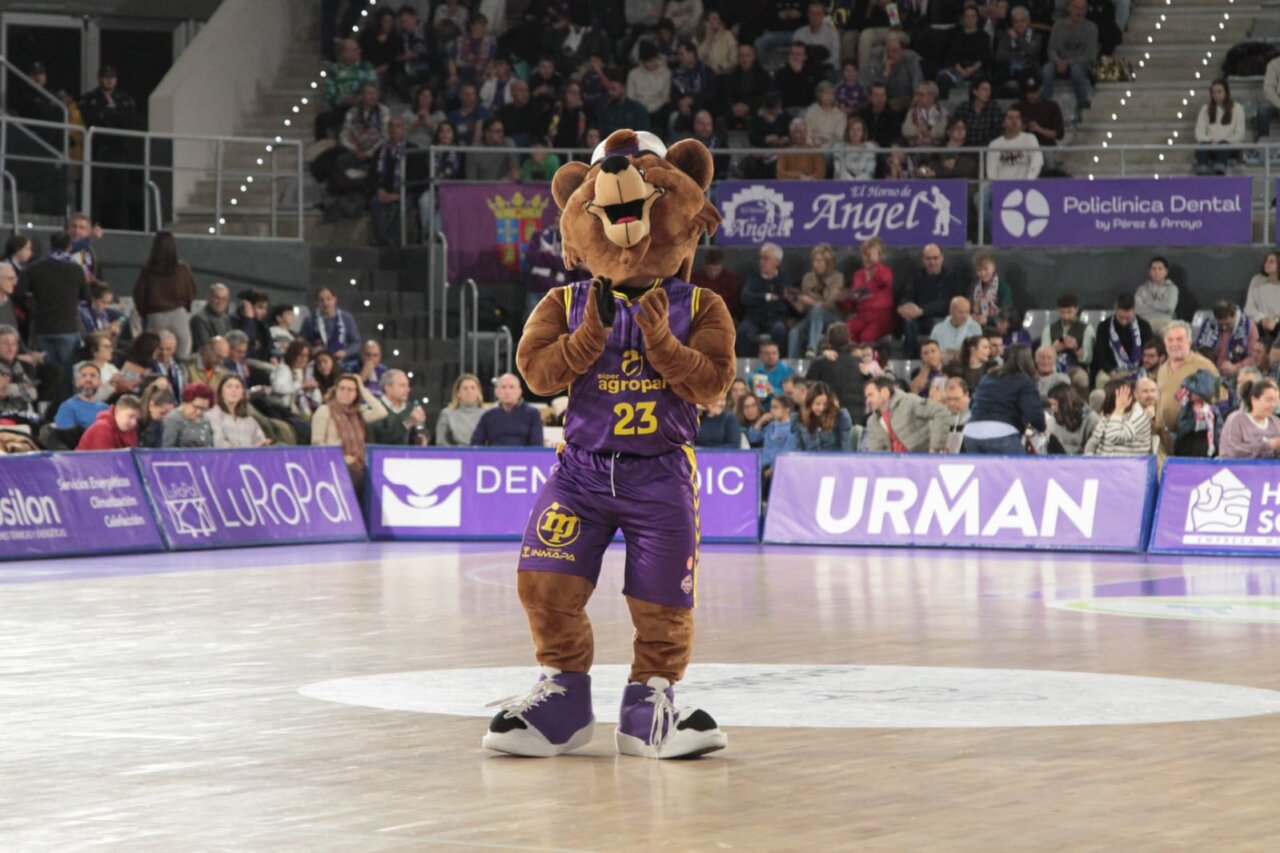 Mascota del Super Agropal Palencia animando en un partido de baloncesto