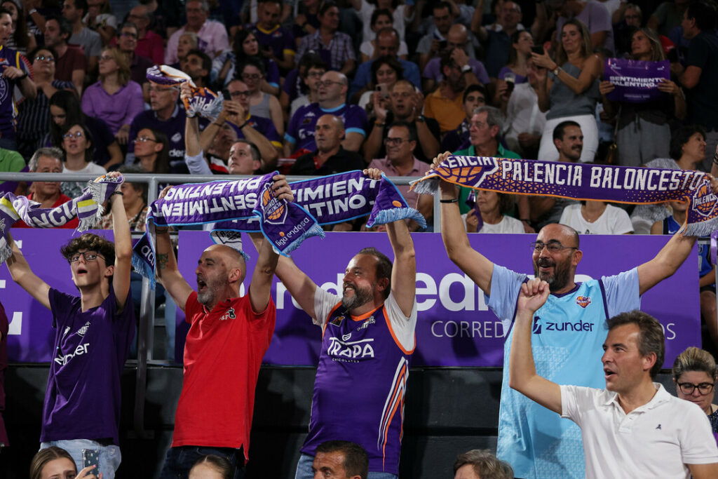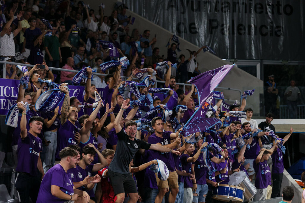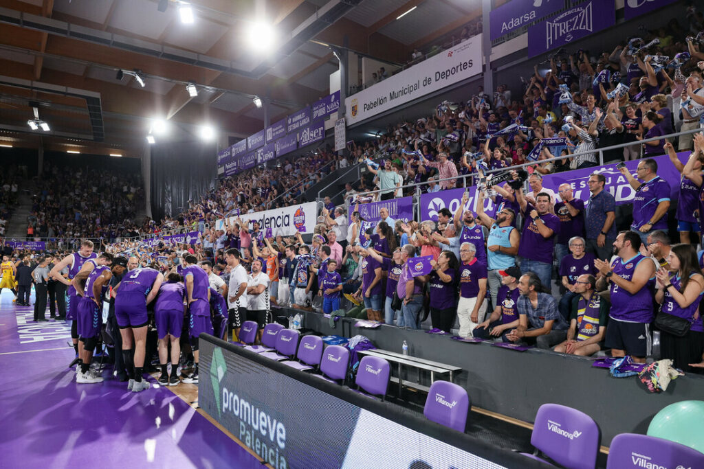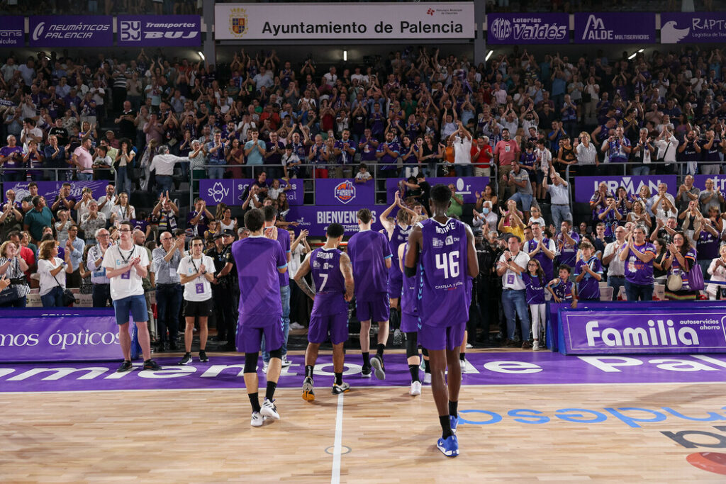Y ese ambiente especial se notaba ya incluso horas antes del comienzo del choque. Porque había fan zone, porque los bares en torno al Pabellón estaban a rebosar. Porque el morado se había hecho con todo… Porque la afición coreó como nunca hasta ahora los nombres de sus jugadores, de los guerreros que representan al Zunder Palencia. Porque sonó el himno de Palencia para enardecer más a la parroquia local. Porque los ánimos, pese a lo complicado de la empresa, estaban altos. Muy altos. Tanto como voló el balón en el saque inicial con el que a las 19 horas la historia se condesaba en un momento. El Zunder Palencia jugaba como local en la ACB.