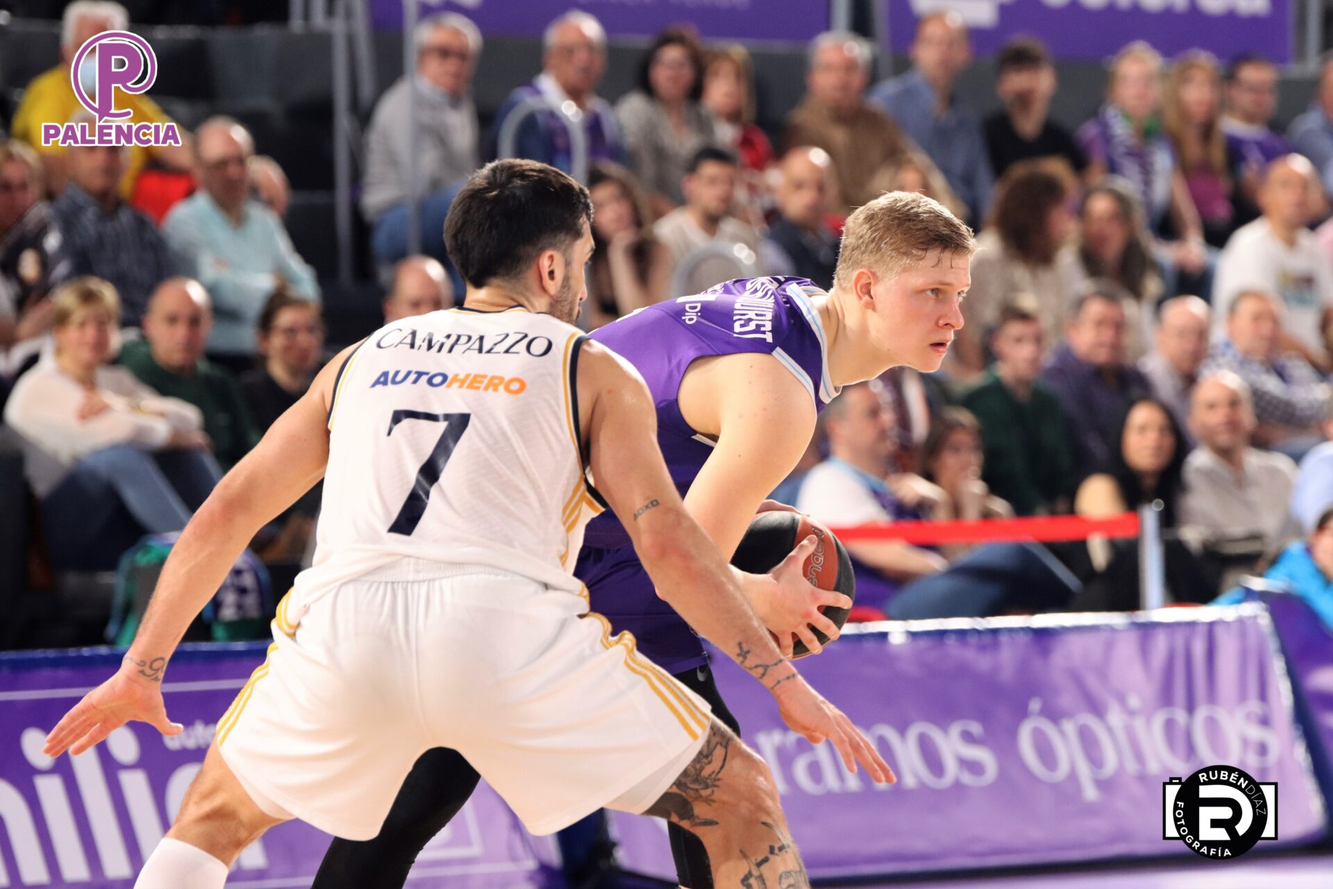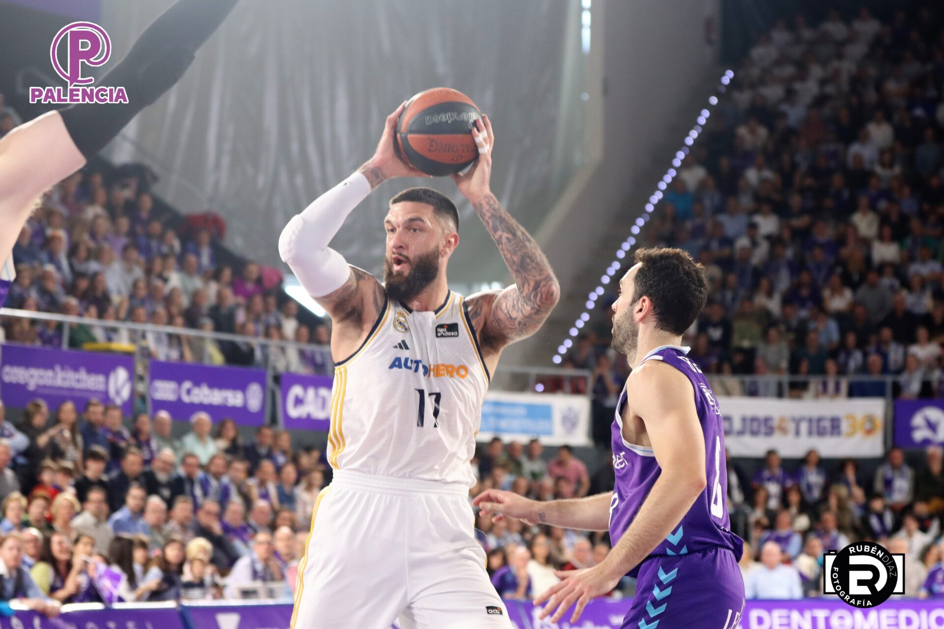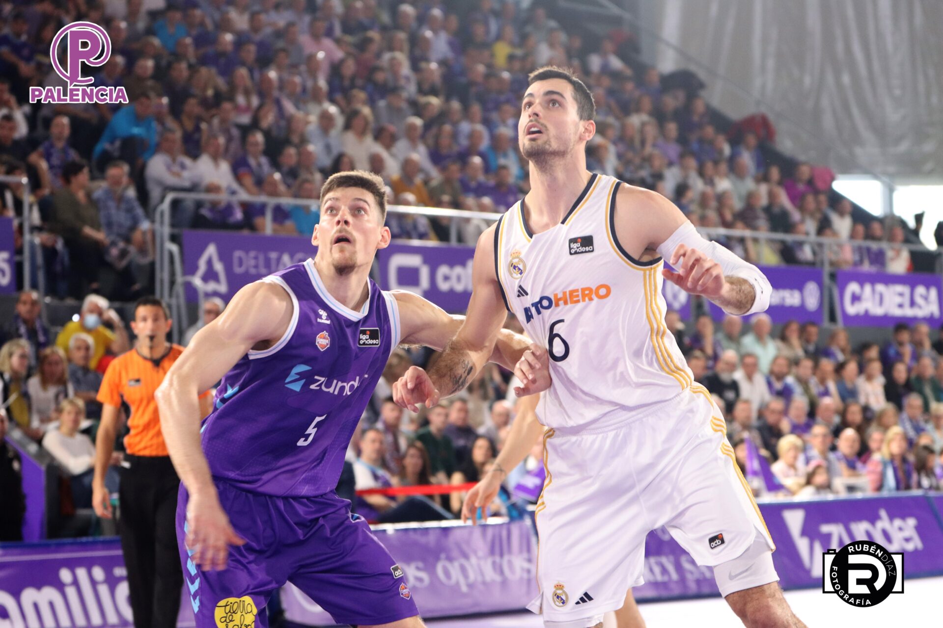Mucha expectación había levantado el Real Madrid en Palencia. Cientos de personas a recibirles en el tren; a su llegada al Pabellón… pero cuando saltaron a la cancha para enfrentarse al Zunder Palencia, el recibimiento fue ruido, pitos. Todo lo contrario que lo que pasó cuando saltó el equipo local ya con todo la afición en sus localidades. Asientos decorados con banderas y tifo. Para recibir al Real Madrid como Palencia se merece. Para animar al equipo en una machada que sería ganar al que, como afirmó Luis Guil en la previa, es el segundo mejor equipo al que se ha enfrentado. Para impulsar al Zunder Palencia en la lucha por mantenerse en la ACB.