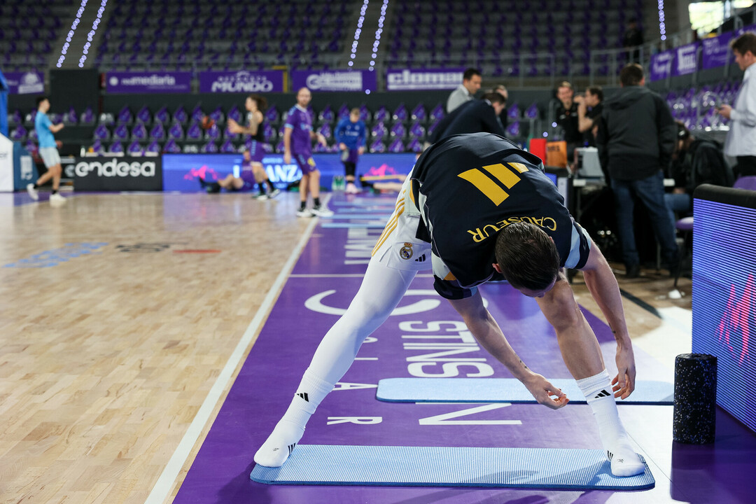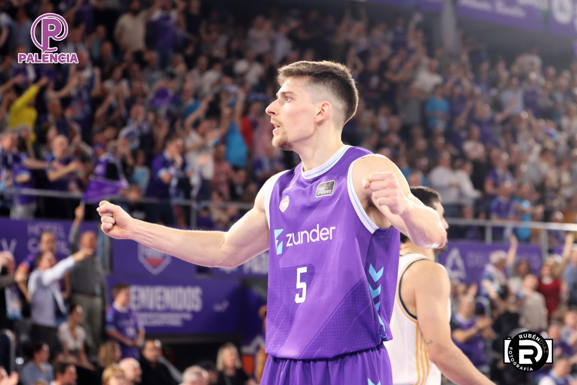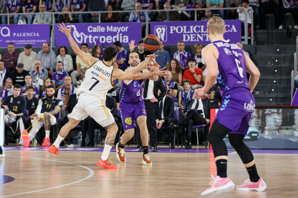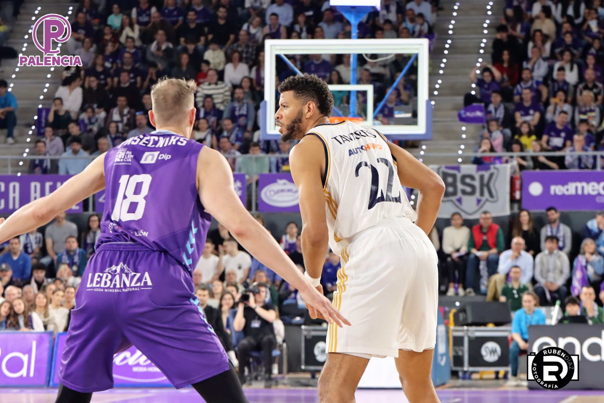 Mucha expectación había levantado el Real Madrid en Palencia. Cientos de personas a recibirles en el tren; a su llegada al Pabellón… pero cuando saltaron a la cancha para enfrentarse al Zunder Palencia, el recibimiento fue ruido, pitos. Todo lo contrario que lo que pasó cuando saltó el equipo local ya con todo la afición en sus localidades. Asientos decorados con banderas y tifo. Para recibir al Real Madrid como Palencia se merece. Para animar al equipo en una machada que sería ganar al que, como afirmó Luis Guil en la previa, es el segundo mejor equipo al que se ha enfrentado. Para impulsar al Zunder Palencia en la lucha por mantenerse en la ACB.