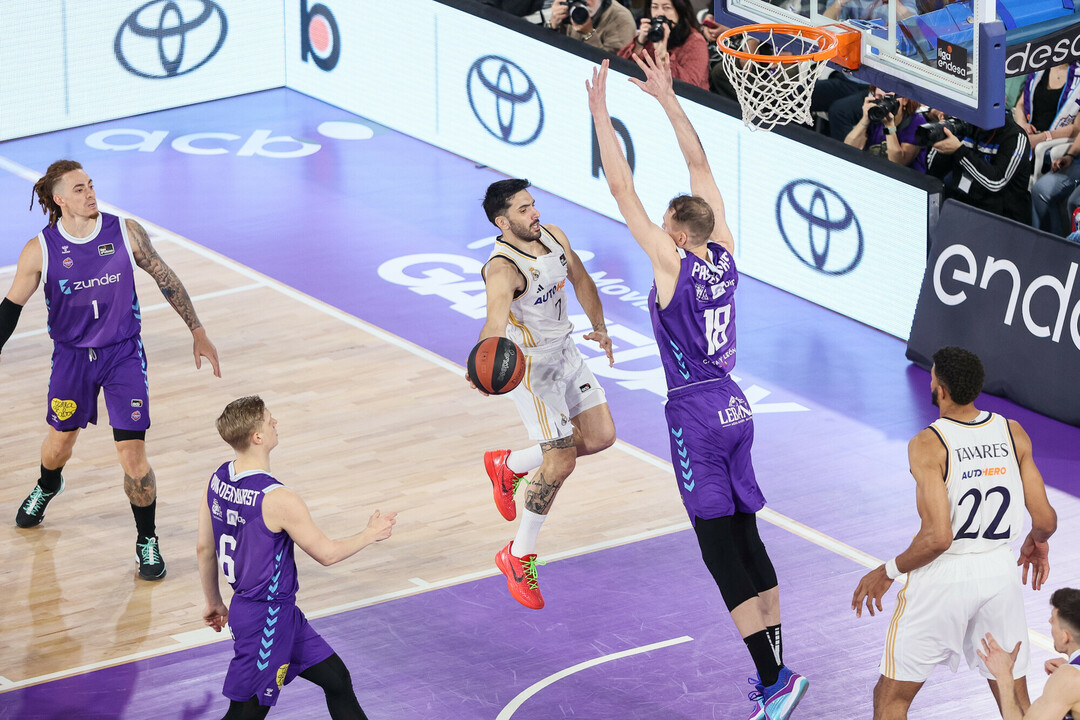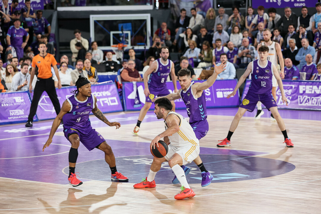 Porque el Madrid cuando se ponía a la faena, se las preparaba al Zunder. «¿Dónde está la bolita, aquí o aquí?» parecían decirles los jugadores blancos a los morados, que volvían a tirar y a atacar con miedo. En cambio, el Madrid encestaba todo, o casi todo. 13-30 consumidos apenas 4 minutos del segundo cuarto. Parcial roto con un triple de Van der Vuurst para una mini reacción de los palentinos que se colocaron a 10: 20-30.