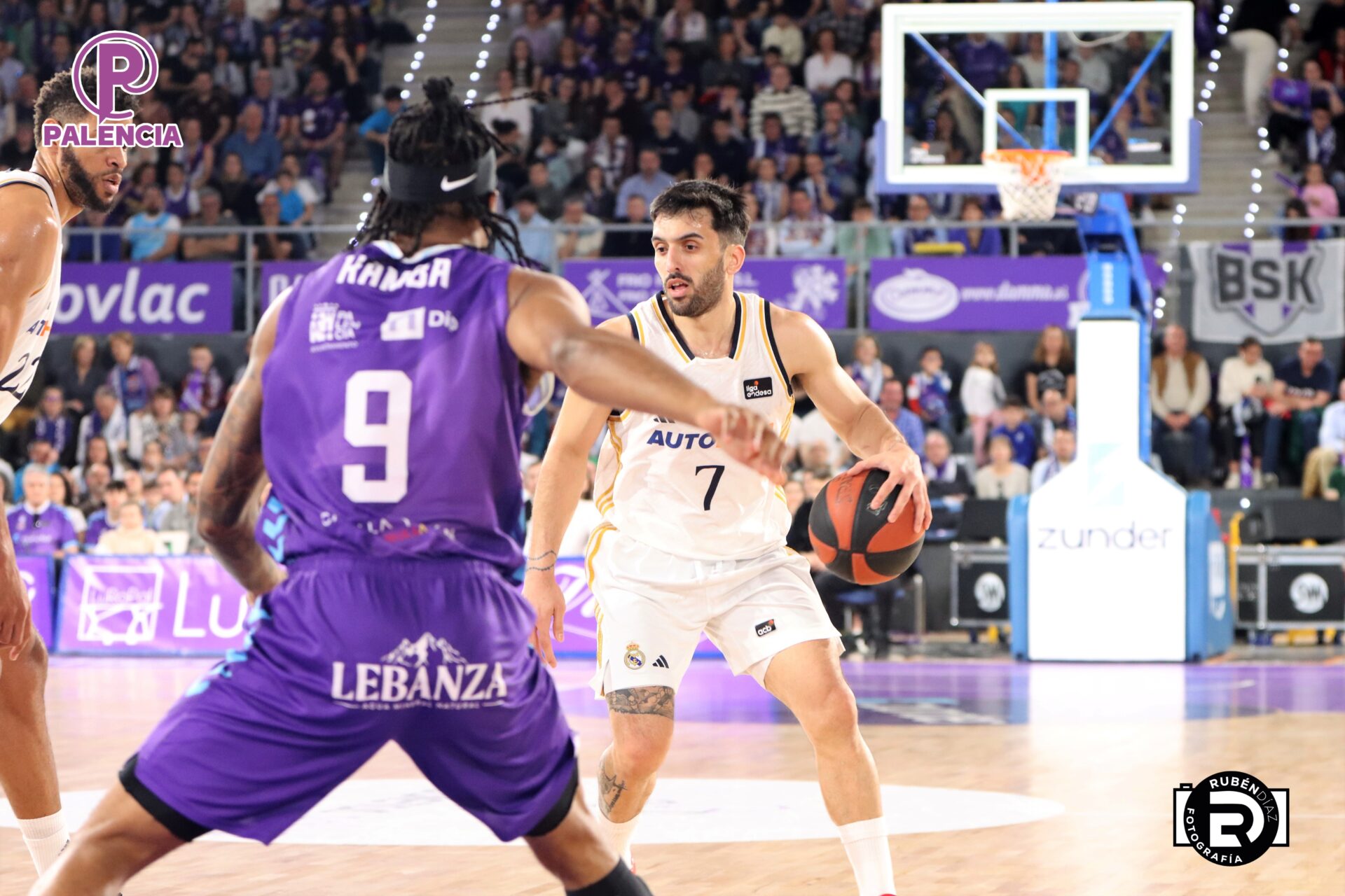 No es que empezase mal el Zunder Palencia en defensa: seis puntos recibidos en algo más de tres minutos… Pero en ataque, nefastos. Hasta siete ataques intentaron los palentinos en los cinco primeros minutos del encuentro, con cero de acierto. Primero tratando de testar el interior de la zona madridista, donde los balones les desaparecían de las manos. Luego con los tiros. Ni de 4 metros ni de triple entraron (22% en los de dos y 33 en los de tres al final del cuarto). Tardó cinco minutos y medio en encestar. Fue Kamba desde el triple escorado.