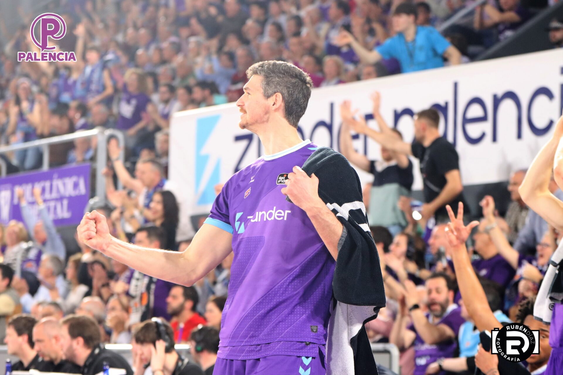 Volvieron a encender los ánimos del Pabellón y de los jugadores varias decisiones arbitrales. Pero también el mate de Kamba, tras tapón de Haarms y el contraataque llevado por Chumi. Sentimiento Palentino, decía Movistar.