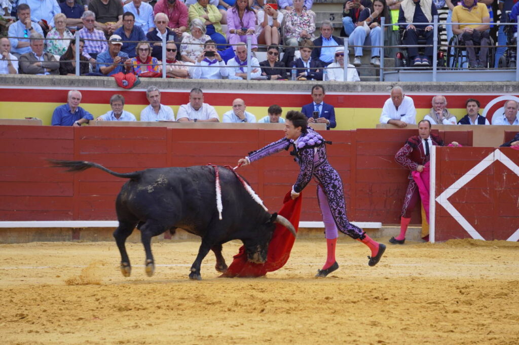 Peor suerte tuvieron en el sorteo sus dos compañeros, especialmente Alejandro Talavante. Con las fuerzas contadas salió el que abría plaza, perdiendo las manos varias veces, y con la boca abierta antes de un puyazo donde dio algo de pelea en el caballo. Un estético quite por chicuelinas de Talavante precedió a una faena marcada por las enclasadas pero sosas embestidas de un toro que caía al suelo en cuanto el matador le exigía lo mas mínimo. Una tanda por circulares, con la cara por arriba precedieron a dos pinchazos y una estocada algo caída. Ni una protesta hubo a un toro que podría perfectamente haberse devuelto.