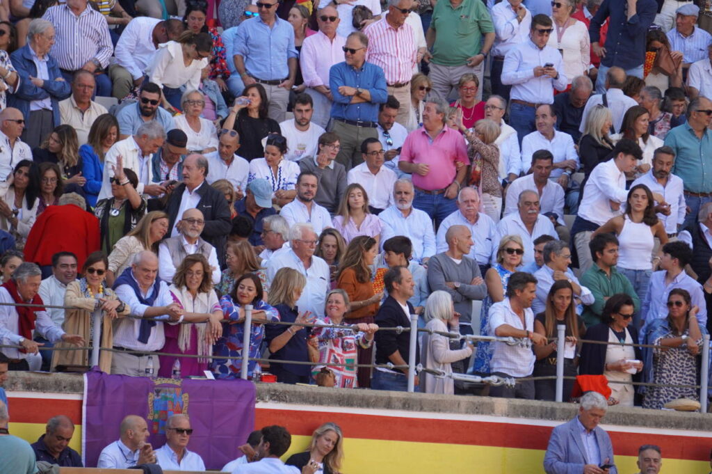 Hacía tiempo que no se veía así la plaza de toros de Palencia, ¡Qué entrada! Espectaculares lucían los tendidos, prácticamente llenos, con una taquilla como pocas se recuerdan en un coso sobredimensionado para la ciudad. La corrida goyesca, todavía sin ningún arraigo en la feria, celebró otro año su edición, en esta ocasión para conmemorar el 50 aniversario de la Peña Taurina Palentina. Durante el paseíllo, como es tradición el día del patrón, las peñas estuvieron presentes en el ruedo. Se echa de menos el ambiente que daban a la plaza cuando la afluencia de peñistas era mayor.