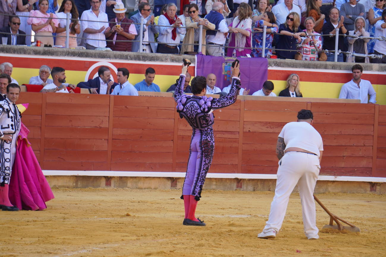 Mucho tardó el presidente en devolver a un inválido cuarto, más de doce veces tuvo que perder las manos para que asomase el pañuelo verde. El sobrero, de La Cercada, anovillado y con muy poca cara, lució escasez de fuerzas y una cierta clase. Con la nobleza por bandera, lo mimó Talavante en una faena de cierta estética que llegó poco a los tendidos por la escasa emoción del oponente. Un ajustado arrimón final, con el toro absolutamente rajado y sin amago alguno de hacer por el torero, levantó al respetable. Mató de estocada baja, bien ejecutada. Sumó Talavante dos orejas de plaza portátil que le abrieron la puerta grande.