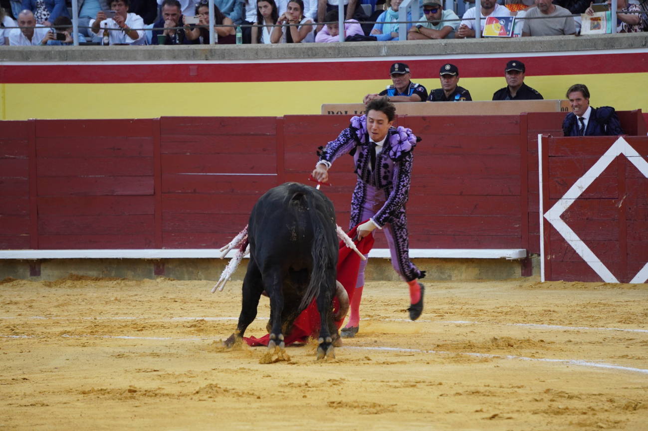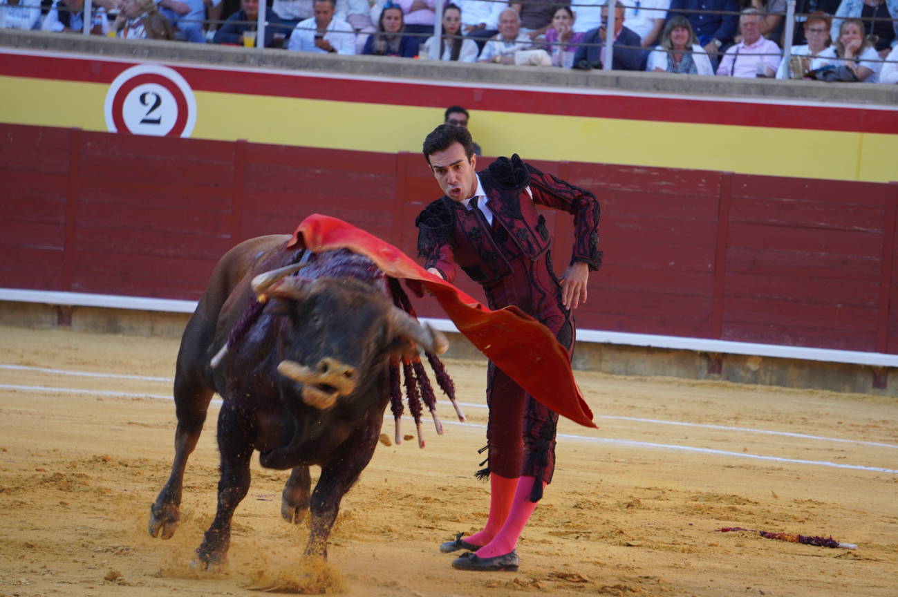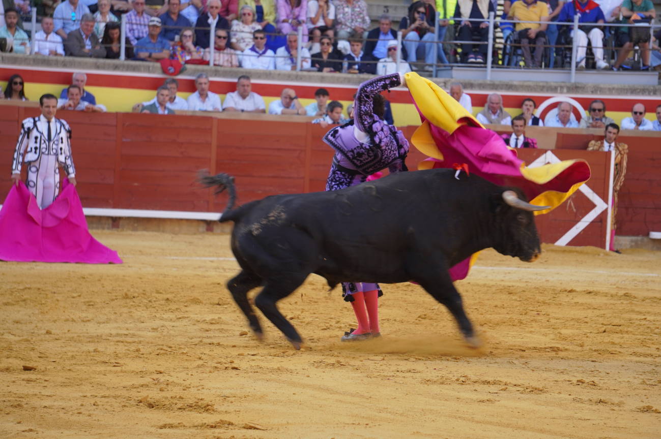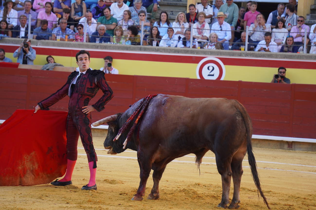 Peor suerte tuvieron en el sorteo sus dos compañeros, especialmente Alejandro Talavante. Con las fuerzas contadas salió el que abría plaza, perdiendo las manos varias veces, y con la boca abierta antes de un puyazo donde dio algo de pelea en el caballo. Un estético quite por chicuelinas de Talavante precedió a una faena marcada por las enclasadas pero sosas embestidas de un toro que caía al suelo en cuanto el matador le exigía lo mas mínimo. Una tanda por circulares, con la cara por arriba precedieron a dos pinchazos y una estocada algo caída. Ni una protesta hubo a un toro que podría perfectamente haberse devuelto.
