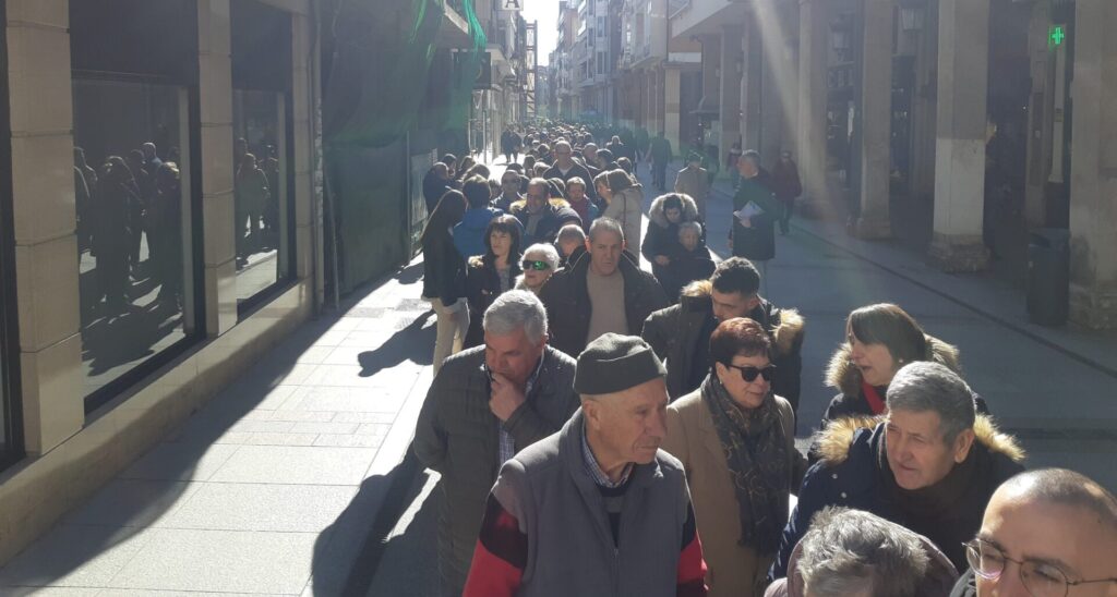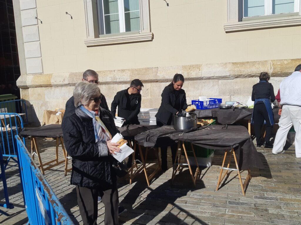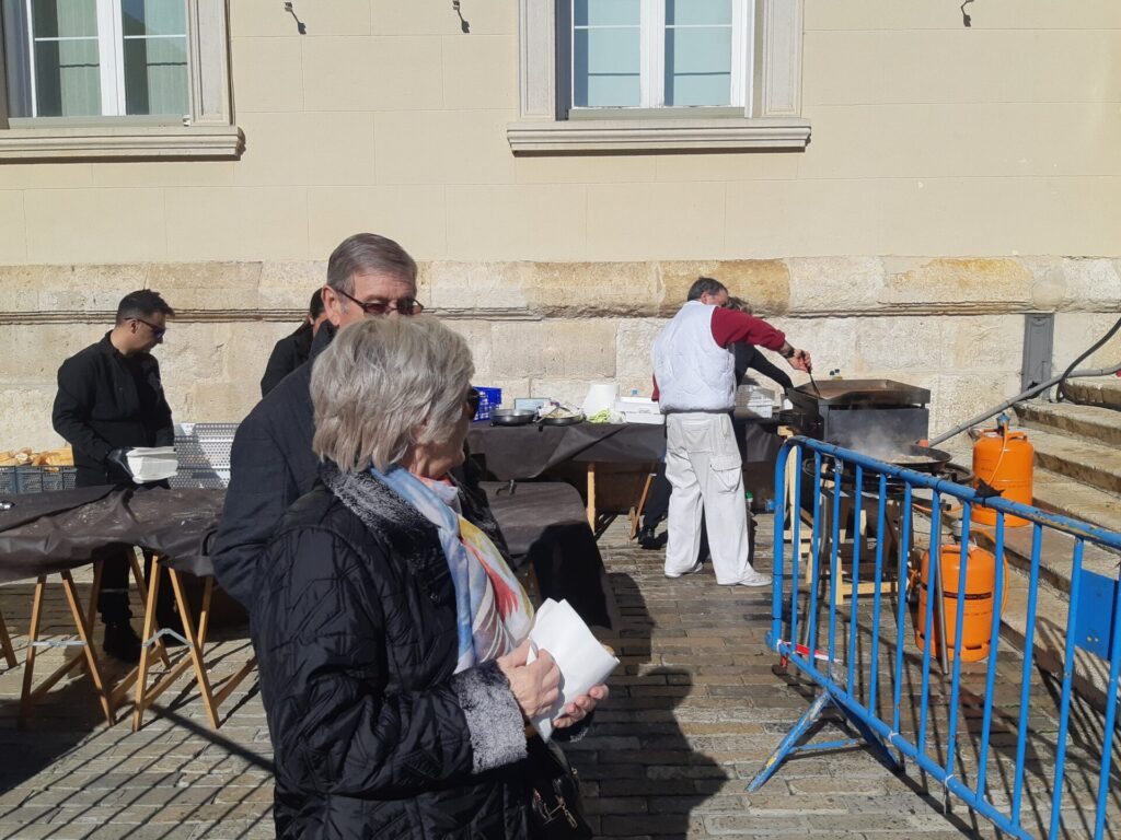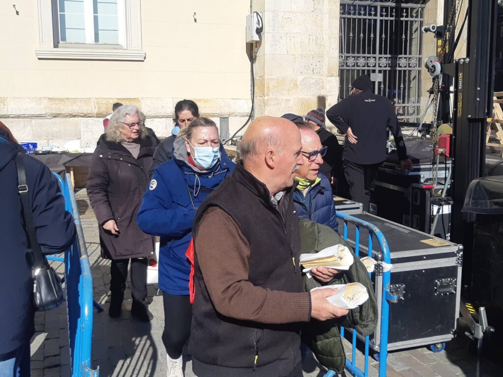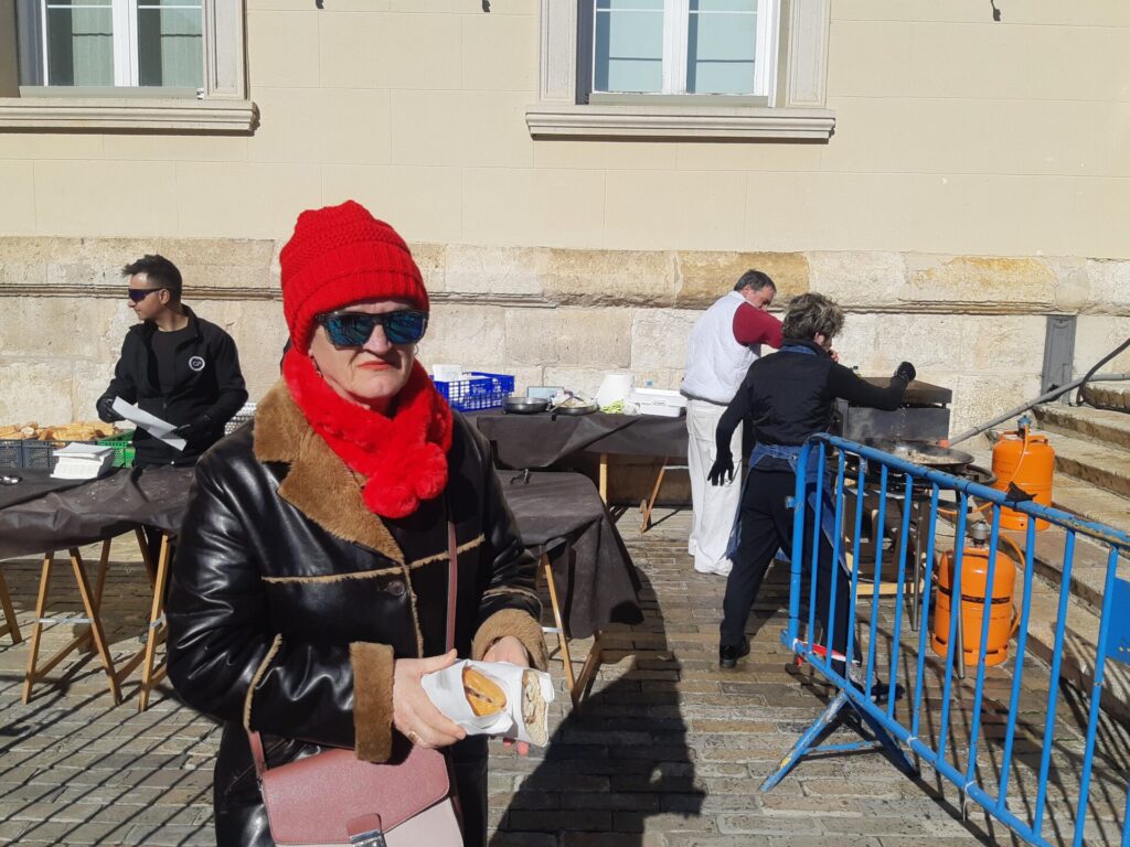 Pero hasta la bocaplaza no por dentro de la Plaza Mayor, donde el mercado tradicional estaba desplegado. No. Saliendo por la Travesía del secretario Vazquez, tomando Ignacio Martínez de Azcoitia para doblar hacia la Calle Mayor. “¿Pero qué dan?”, preguntaban quienes pasaban por la arteria palentina. “¿Y dónde dan los tickets?”. Porque aunque la degustación del bocata de panceta era gratuita, por motivos organizativos era necesario hacerse con un boleto previamente. “Se han acabado ya”, respondían desde la cola.