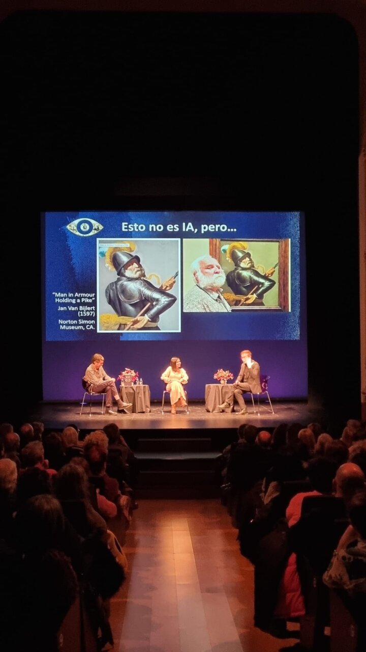 En ese tramo final, la charla viró hacia el arte y la simbología. Sierra invitó al público a “trastear” con la aplicación Google Arts & Culture, a hacerse un selfie y descubrir en qué obra clásica aparece su “doble”. Habló de curiosidades iconográficas: desde Botticelli hasta Miguel Ángel, recordando cómo en la Capilla Sixtina algunos ven representado un cerebro o cómo “sin viento no hay primavera”, en alusión a símbolos ocultos que siguen dialogando con nosotros siglos después.