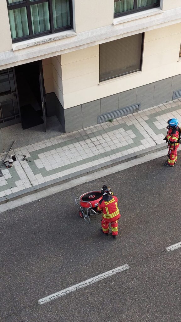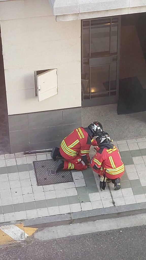 Con los vecinos ya fuera del edificio, algunos en zapatillas, se procedió al corte de la válvula de finca, así como a la ventilación del interior del edificio mediante grandes ventiladores ante la atenta mirada de los vecinos, tanto los sacados de su casa como de los edificios colindantes.