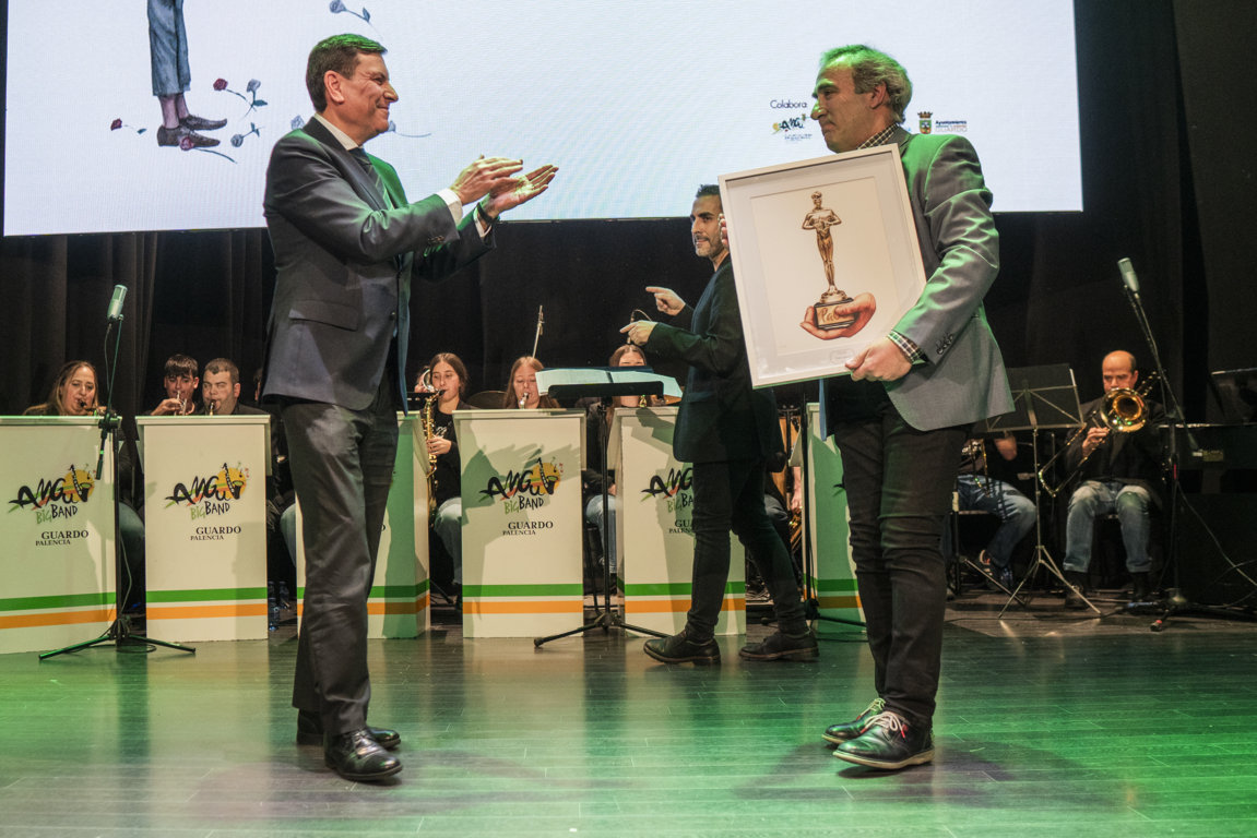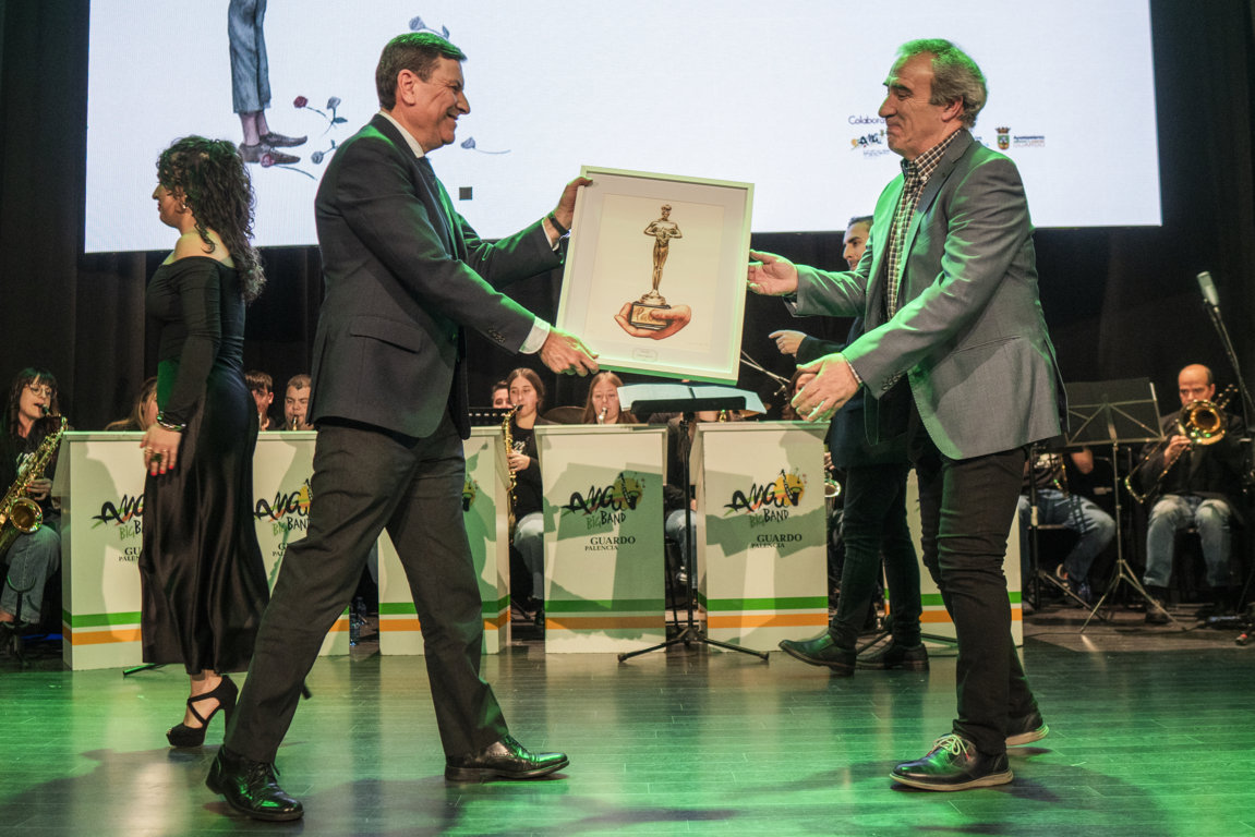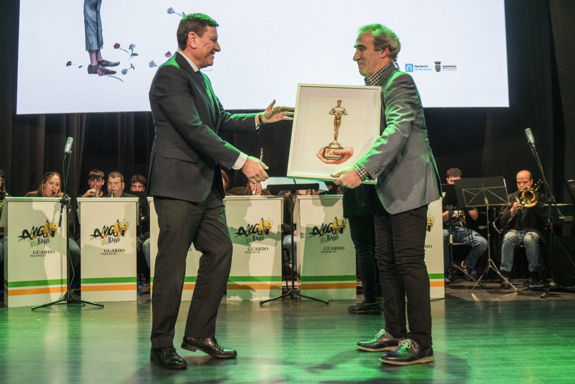 Dos hombres entregando un premio en el Auditorio Municipal de Guardo