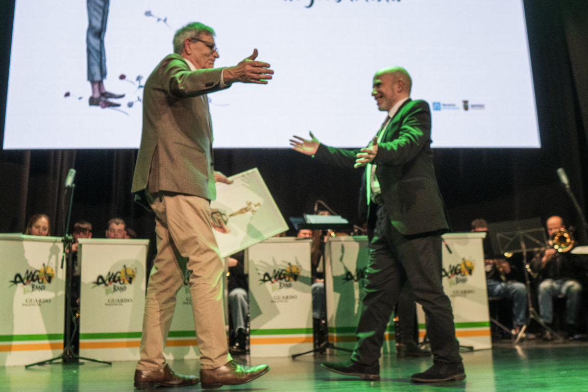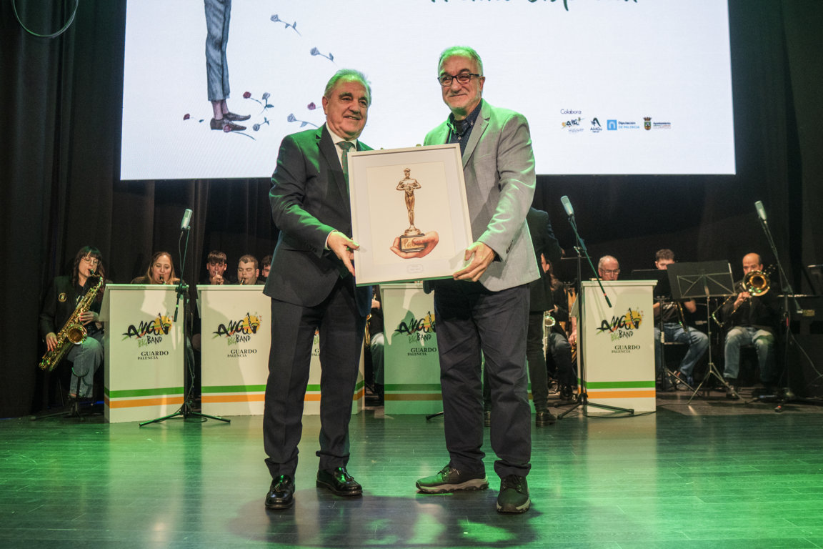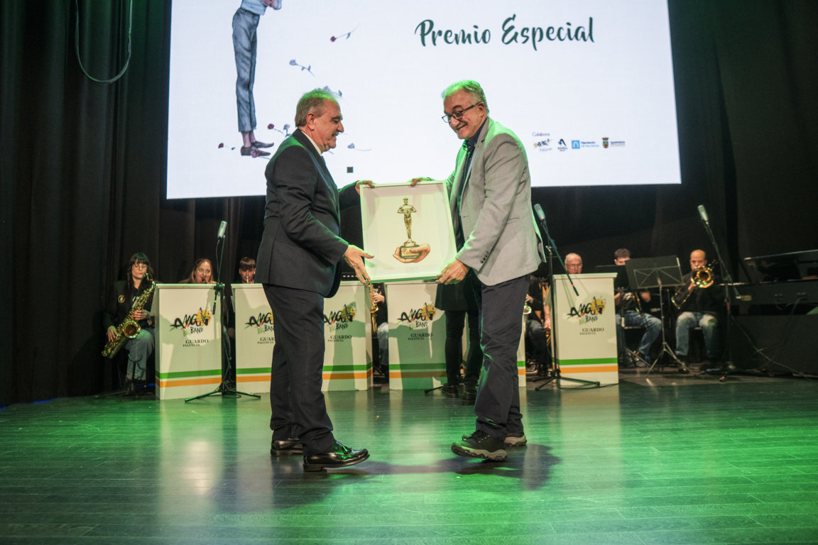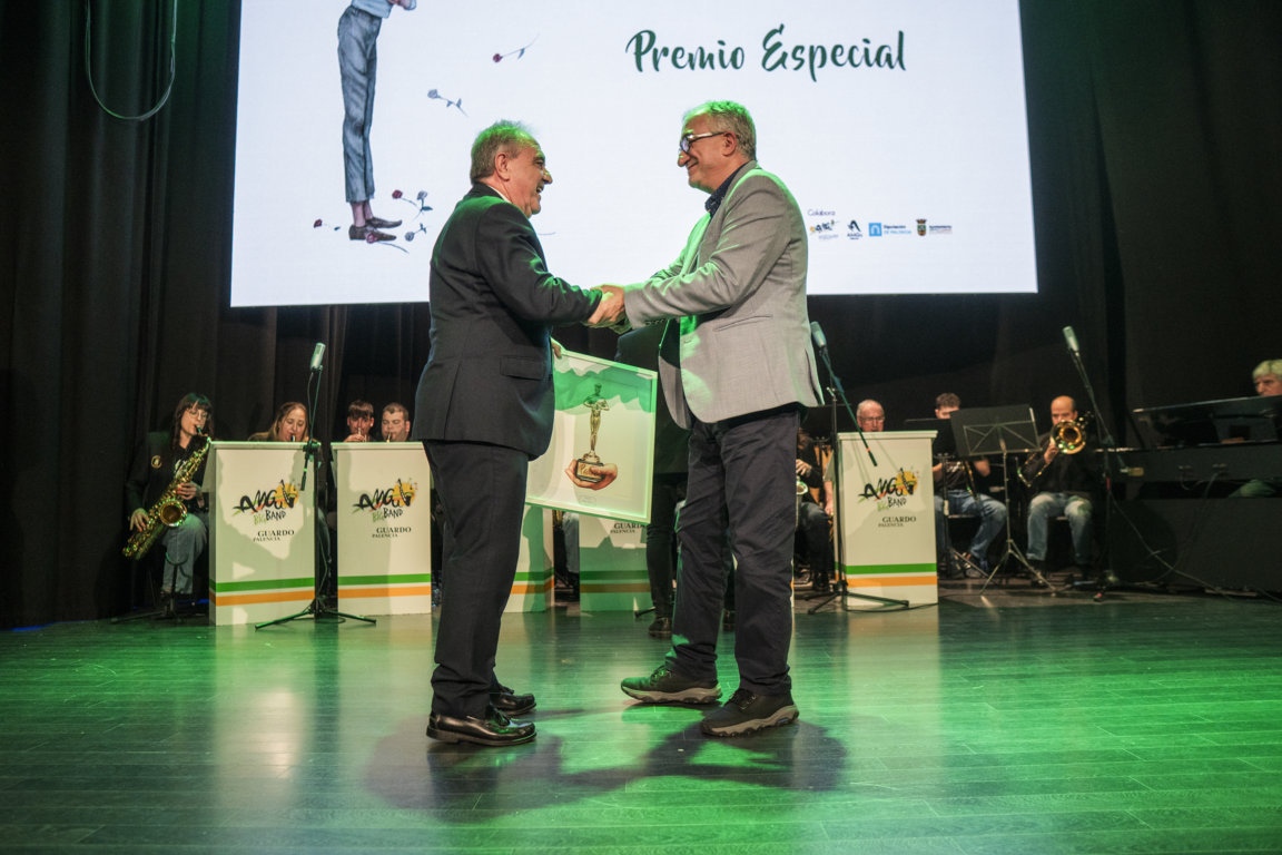 Dos hombres entregando un premio en el Auditorio Municipal de Guardo
