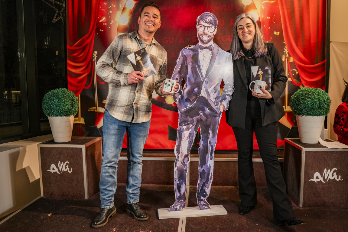 Dos personas posando junto a un photocall en la gala de los Premios PaCO.