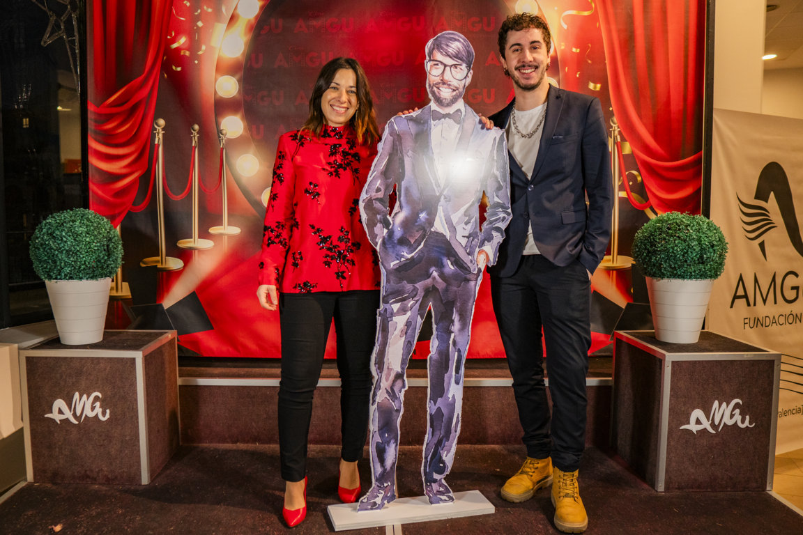 Dos personas posando junto a un photocall en la gala de los Premios PaCO