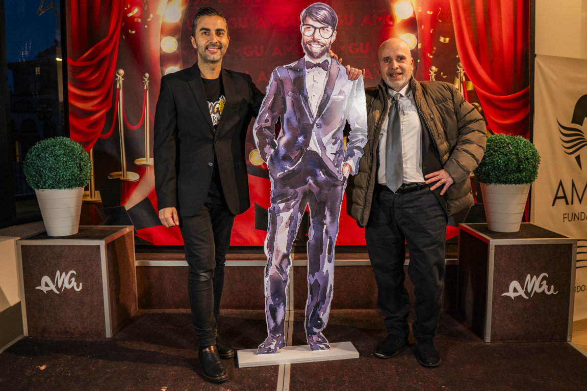 Dos hombres posando junto a un photocall en la gala de los Premios PaCO
