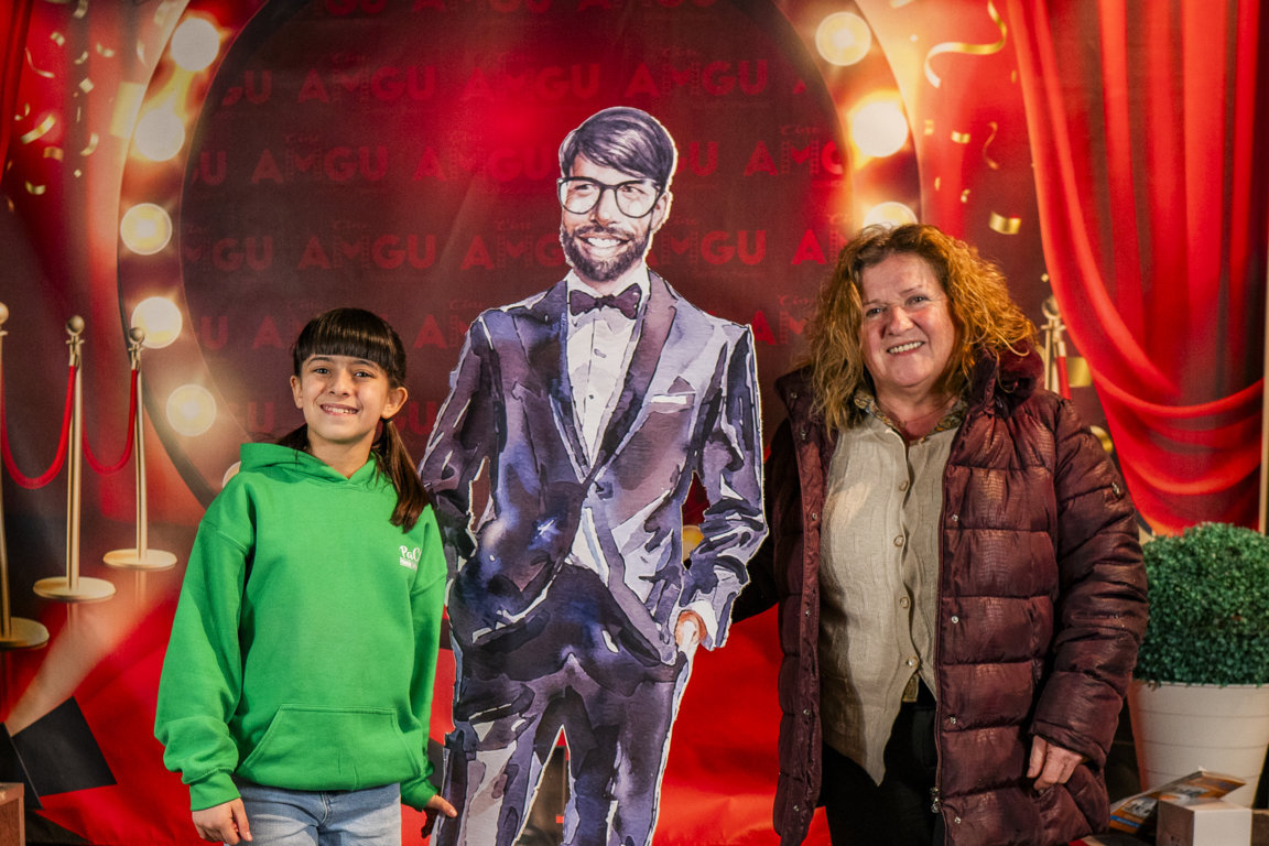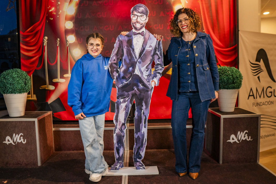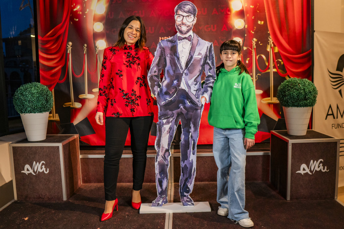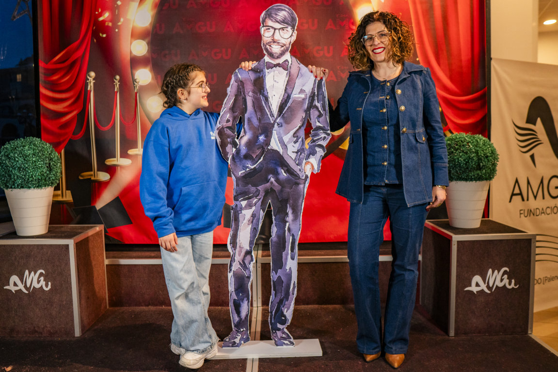 Niña y mujer posando junto a un photocall de los Premios PaCO