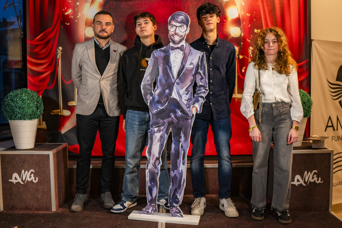 Fotografía de un photocall en la gala de los Premios PaCO con una figura de cartón