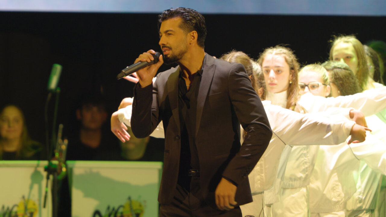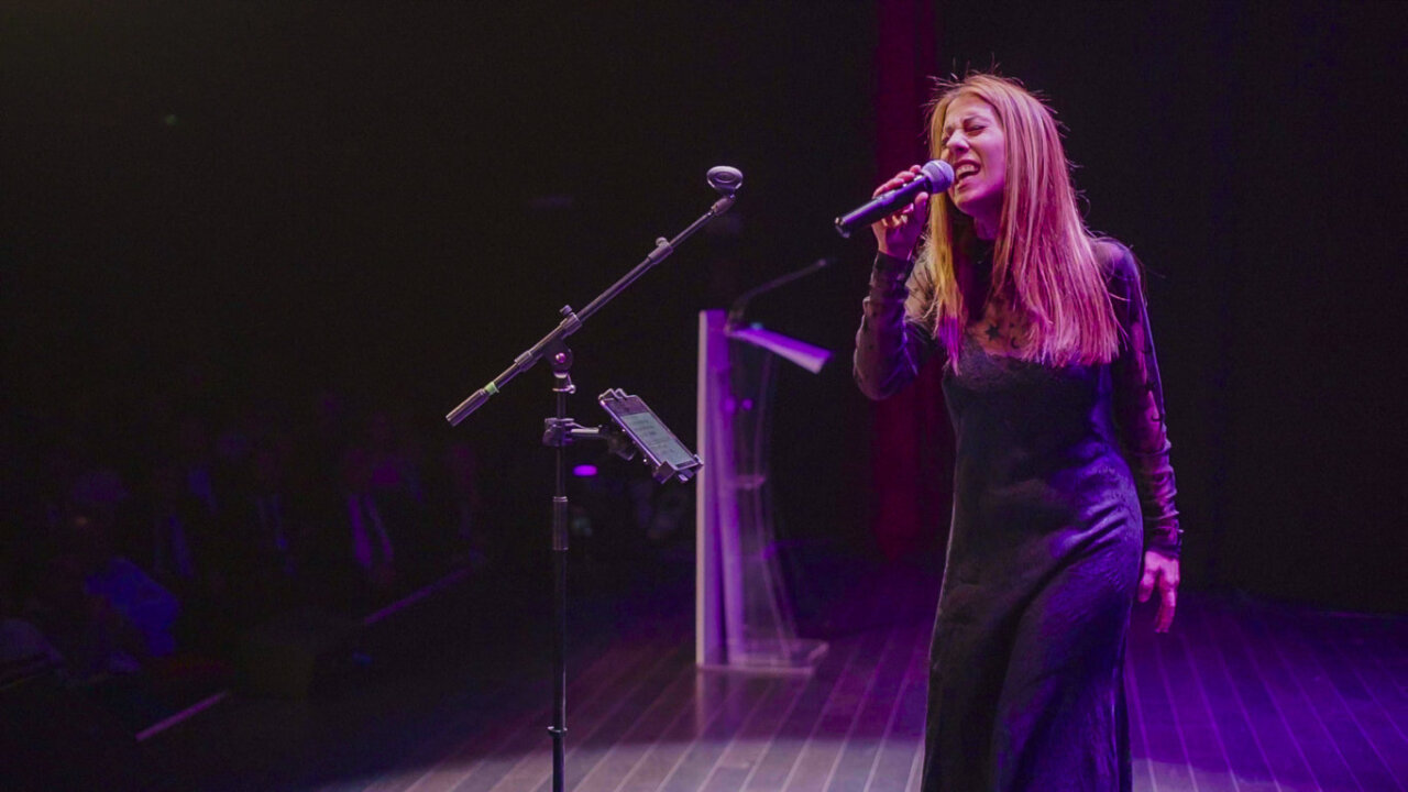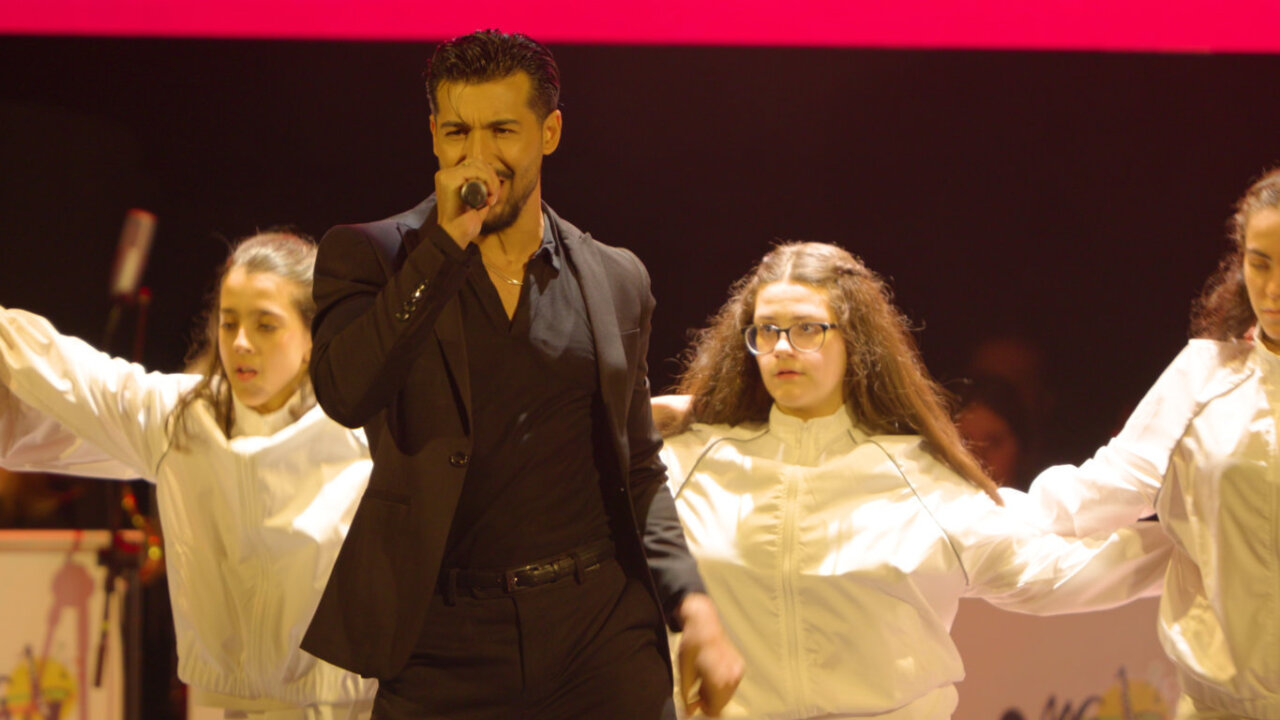 Artista cantando en la gala de los Premios PaCO en Guardo
