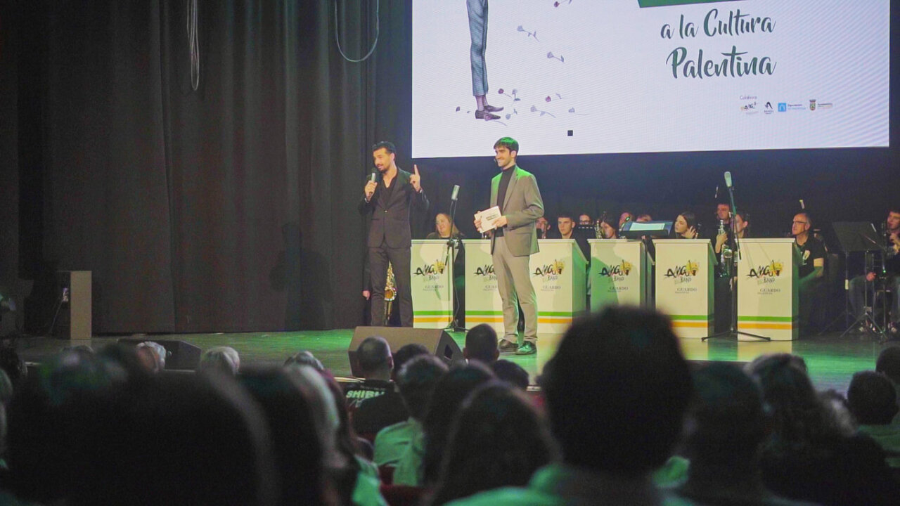 Actuación en la gran gala de la cultura palentina con artistas en el escenario.