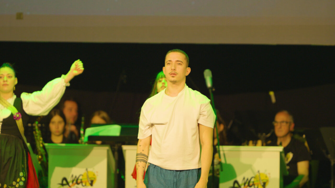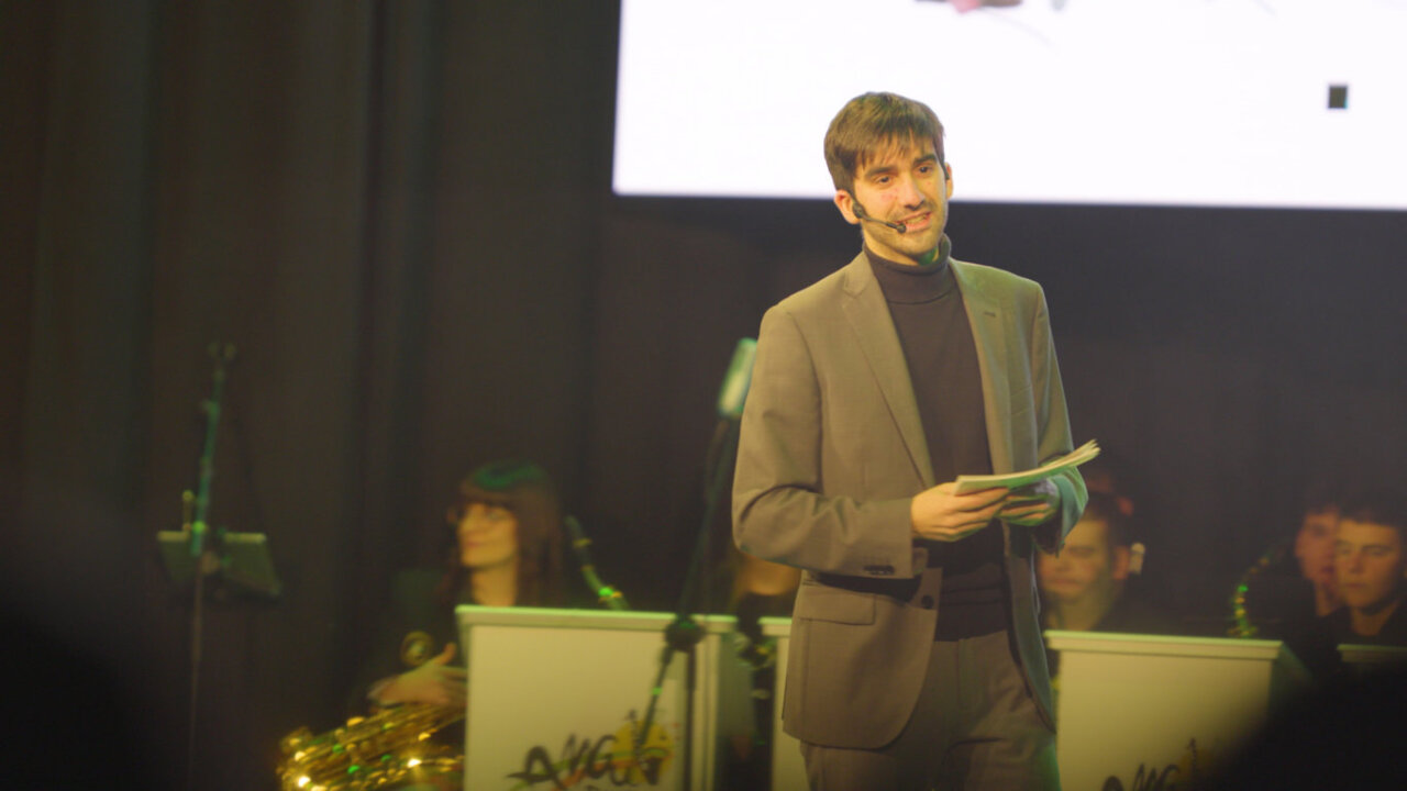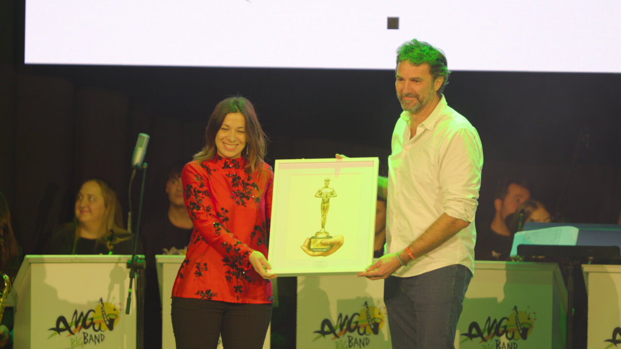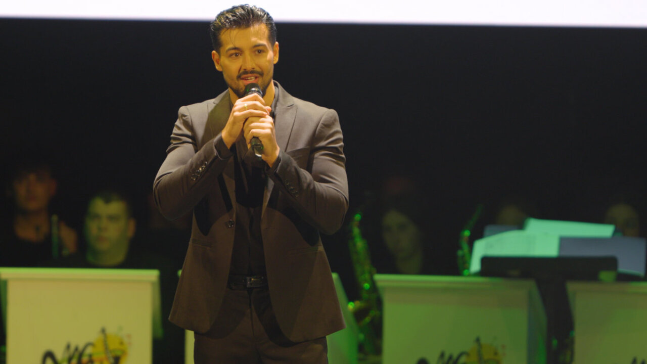 Director de orquesta dirigiendo a la banda en la gala de los Premios PaCO