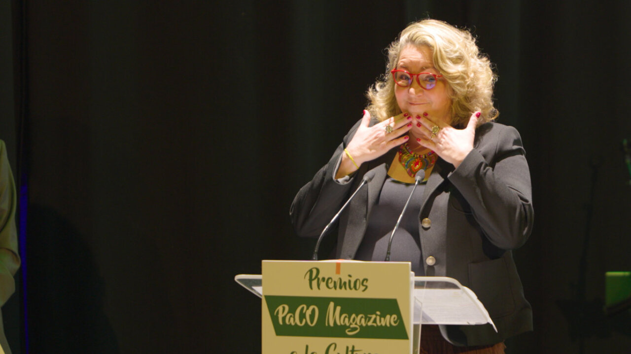 Presentadora emocionada en la gala de los Premios PaCO en Guardo