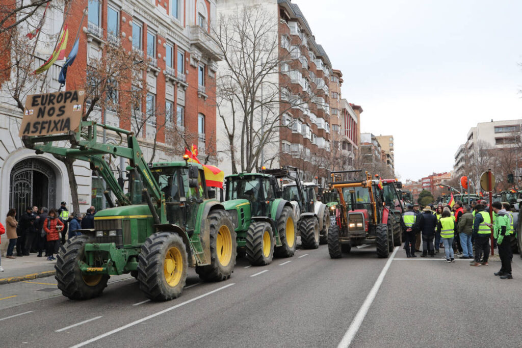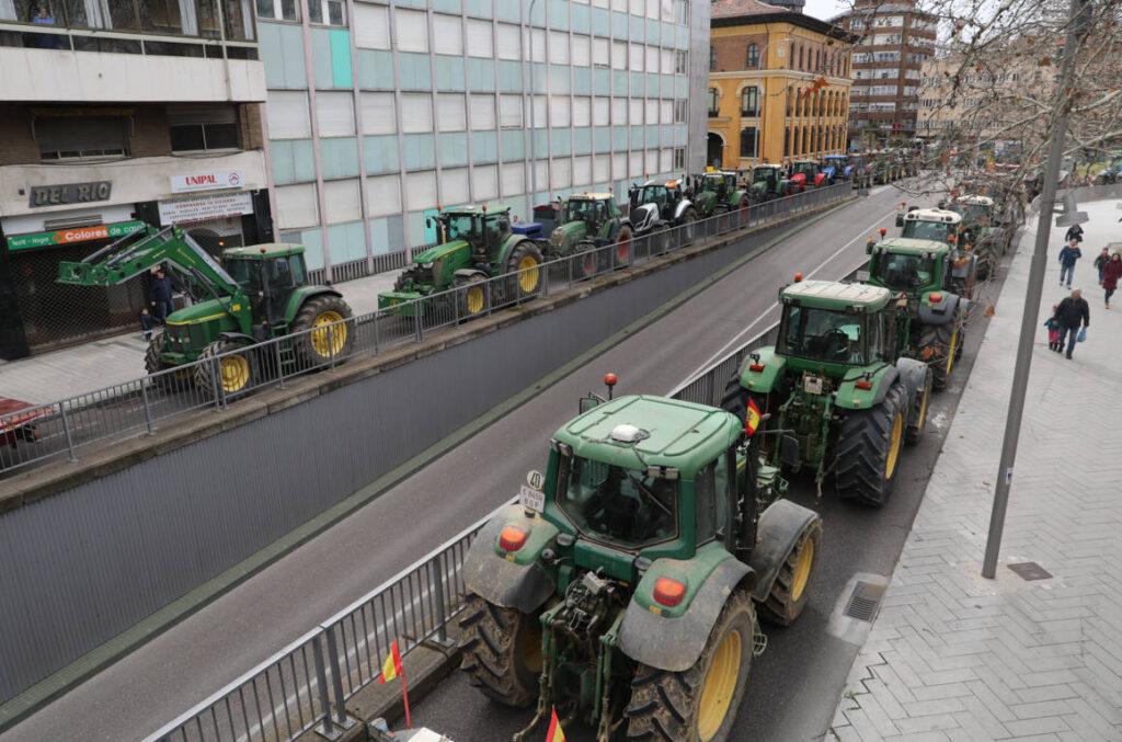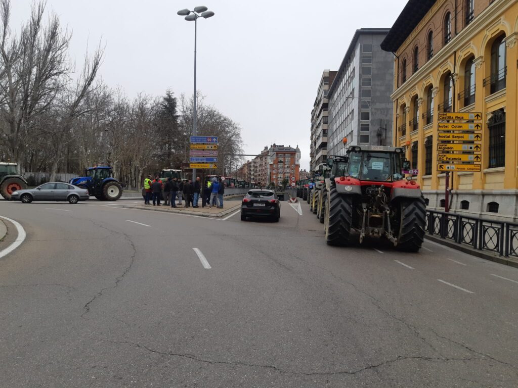 Tras la ocupación por centenares de tractores de las calles palentinas, los agricultores se trasladaron posteriormente al polígono, desde donde accedieron a la autovía A-67 que mantuvieron cortada durante algunos minutos.
