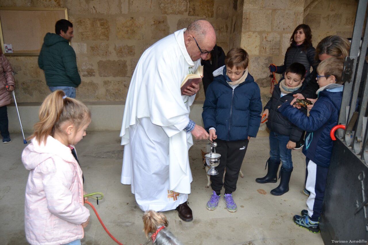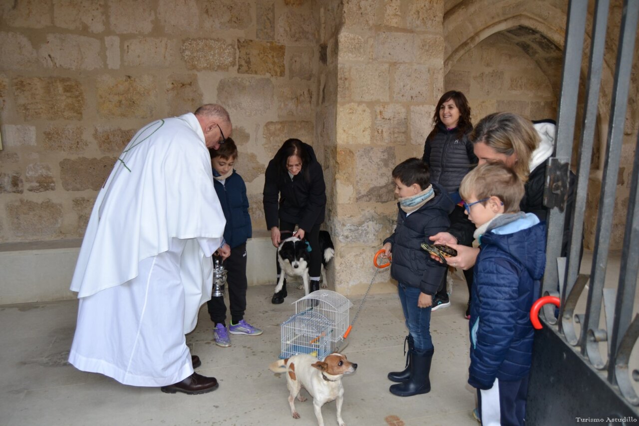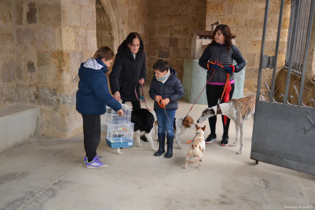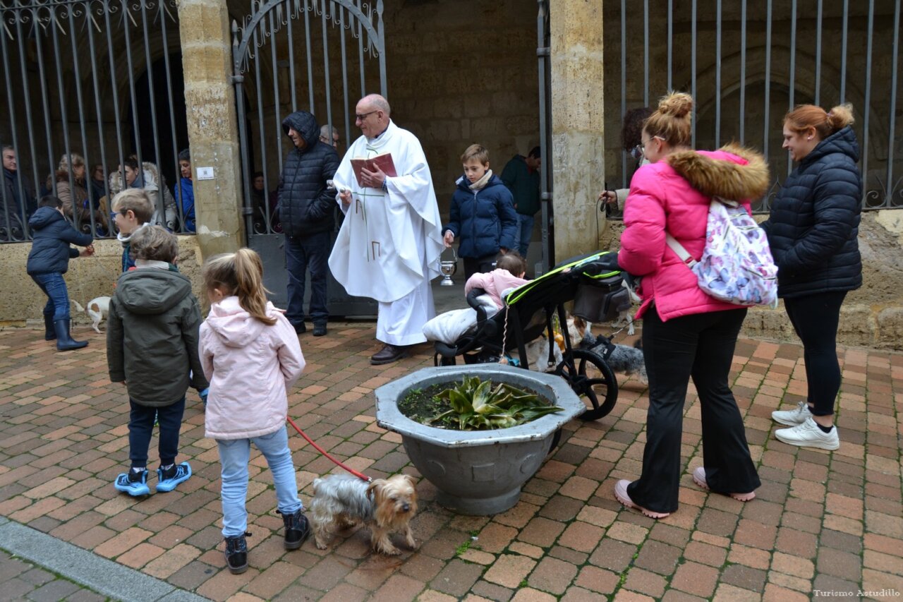 Celebración de la bendición de animales en Astudillo con niños y mascotas.