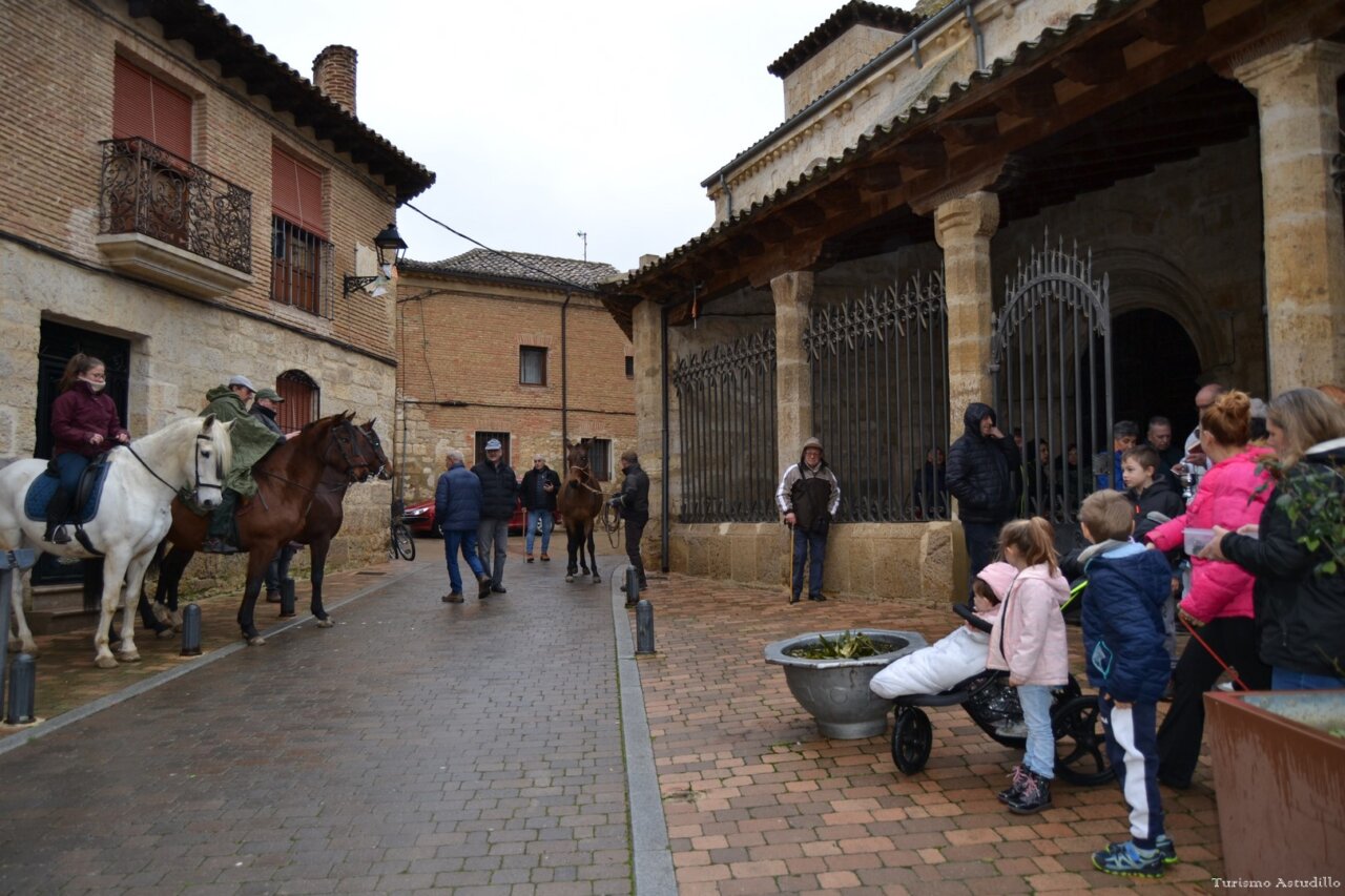 Celebración de la bendición de animales en Astudillo con caballos y personas