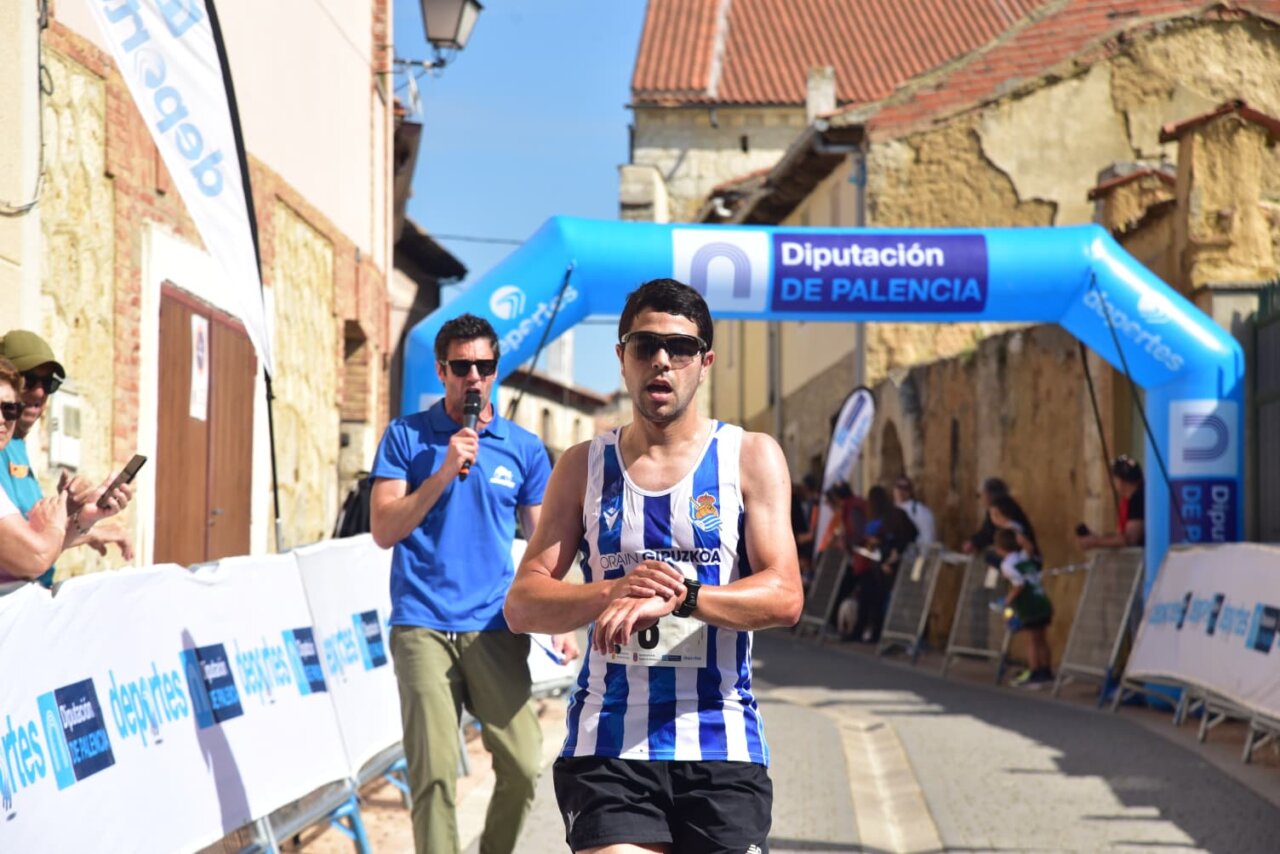 Con un recorrido de alrededor de 10 kilómetros por caminos y pistas acumulando un desnivel positivo de 160 metros, tras ascender, de forma continua y casi sin descansos desde las orillas del Carrión al páramo sobre este, el primero en la línea de meta fue David García Catalina, del Vickfoods Athletics, con un tiempo de 33 minutos y 27 segundos.