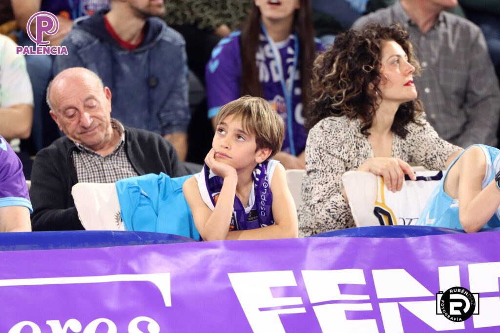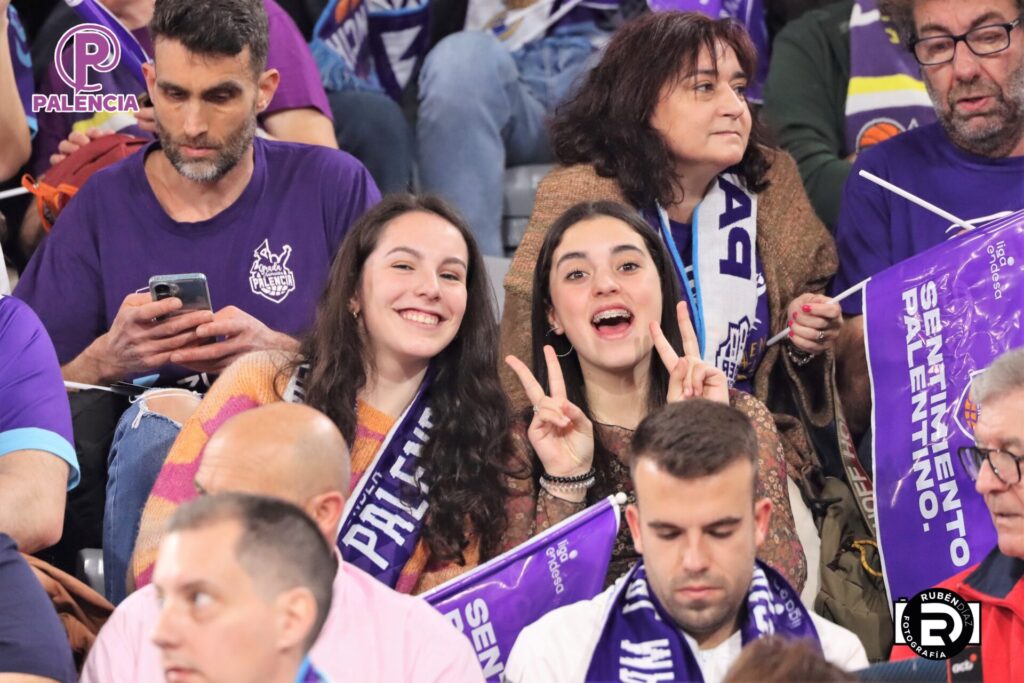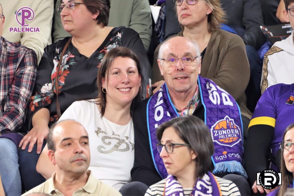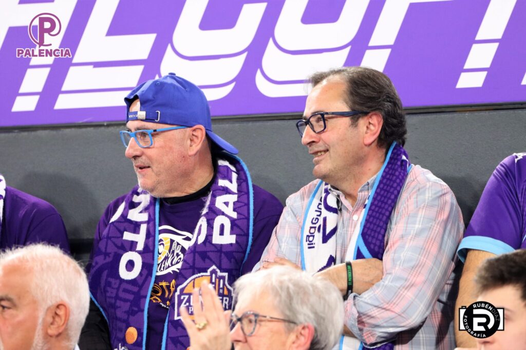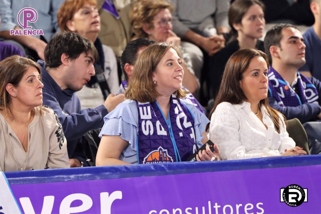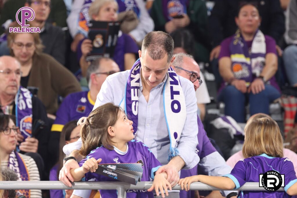Tan especial era la jornada en las gradas que los aficionados, palentinos, pero también varios centenares de madrileños, se encontraron unos aplaudidores de la ACB, y también de banderas con los colores morados.