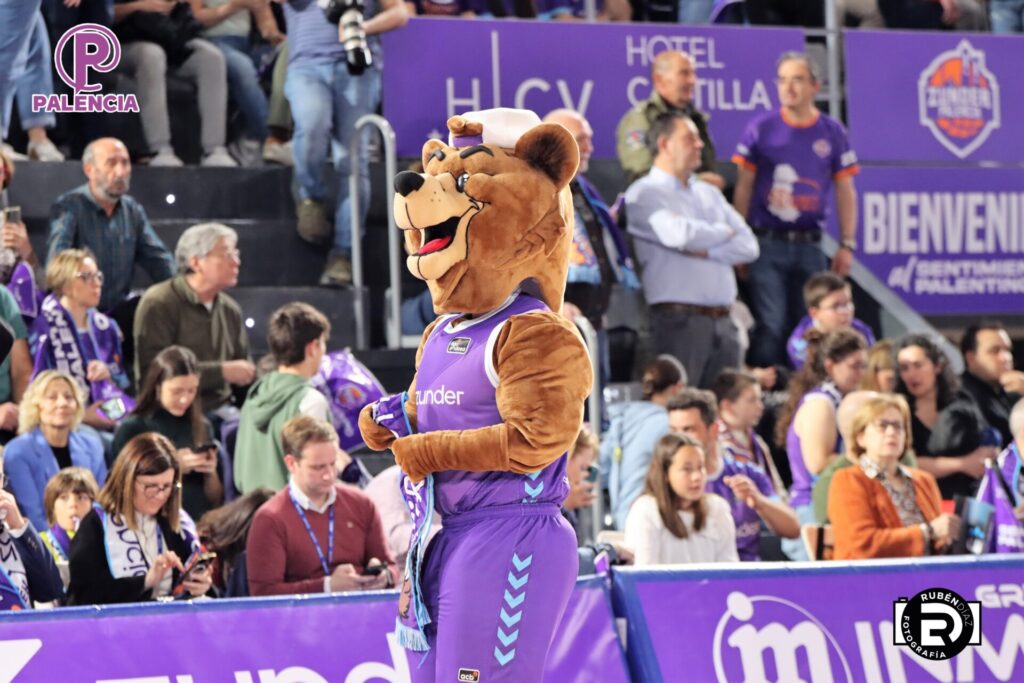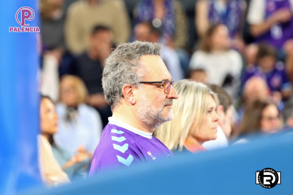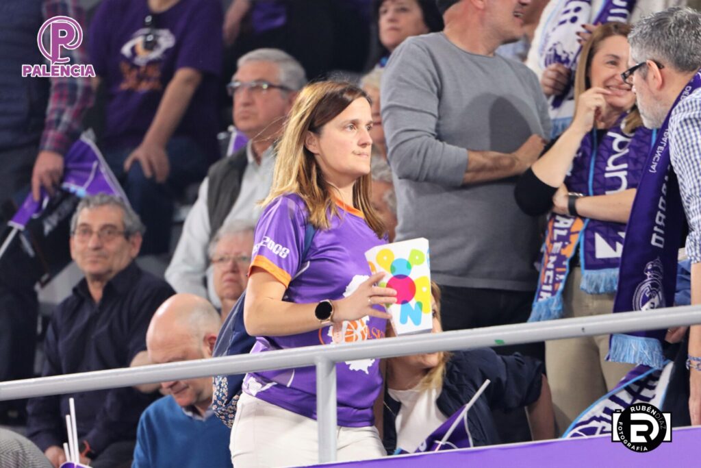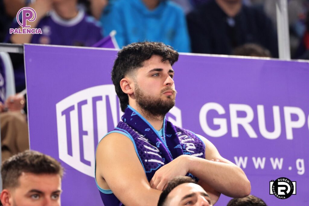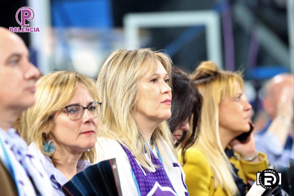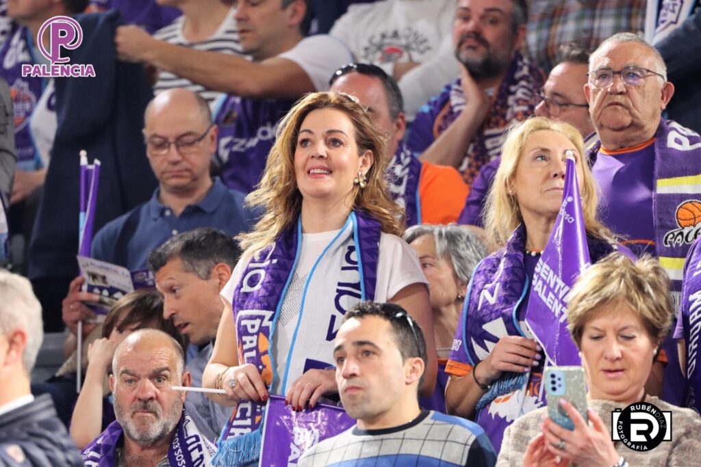 Tan especial era la jornada en las gradas que los aficionados, palentinos, pero también varios centenares de madrileños, se encontraron unos aplaudidores de la ACB, y también de banderas con los colores morados.