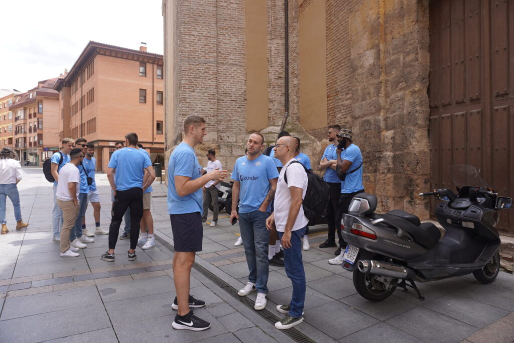 Los jugadores y cuerpo técnico del conjunto palentino comparten el ascenso a ACB con los empleados del Zunder