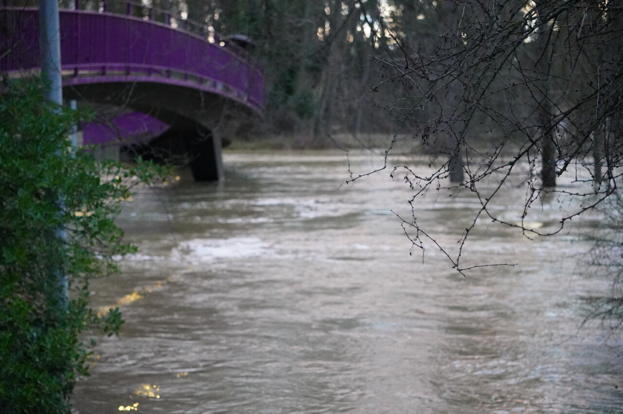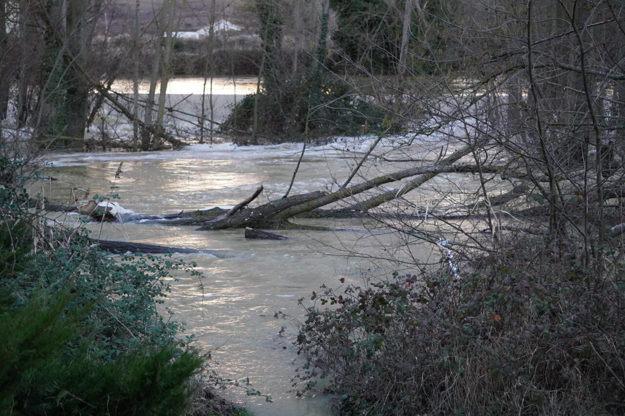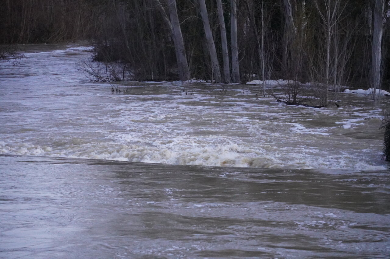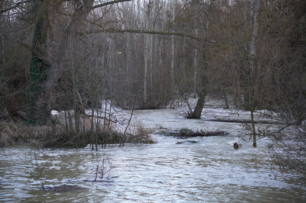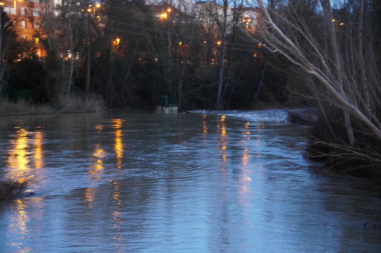El Río Carrión seguirá creciendo en las próximas horas y se espera que el pico de esta avenida llegue en torno a las 23 horas de hoy jueves, superando los 130 metros cúbicos por segundo en la estación de aforo de la puente de Don Guarín. Un dato clave, dado que aguas abajo de ese punto desagua el Valdeginate, que ahora mismo lleva algo más de 8 metros cúbicos, cuando lo rara vez aporta más de 1,5 metros cúbicos por segundo.