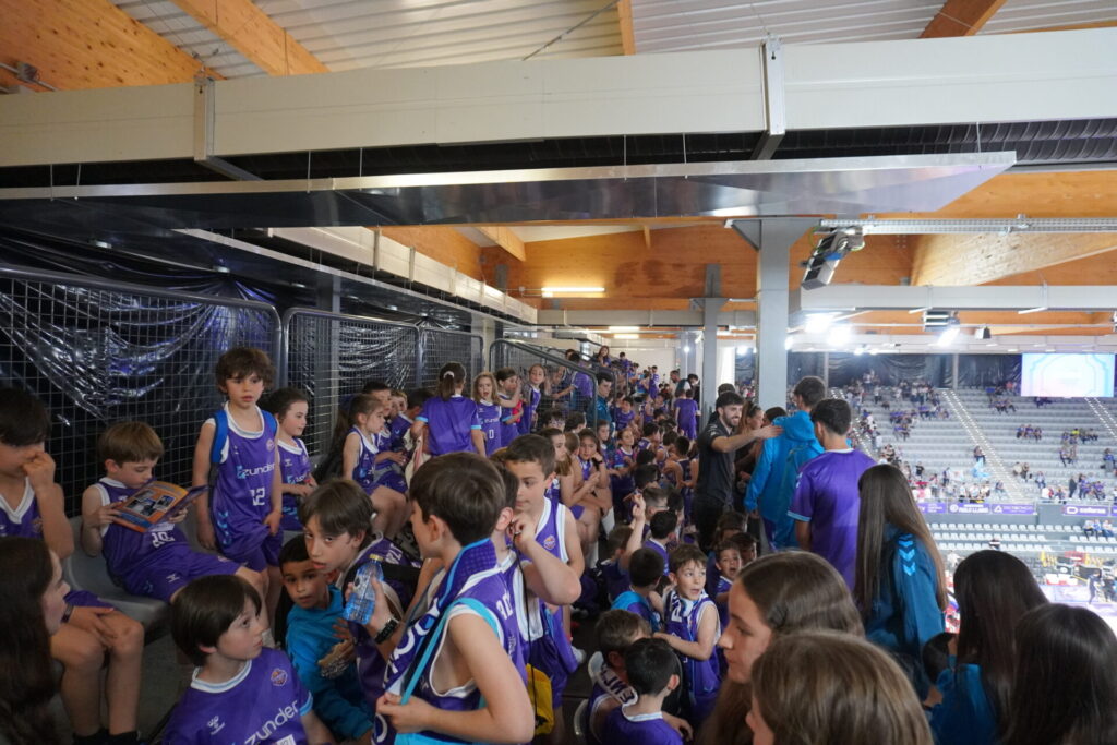 El pabellón se despide de la Liga Endesa con un nuevo lleno total, la foto de familia de todos los jugadores de la cantera del Maristas y con el agradecimiento del club y los jugadores a los aficionados