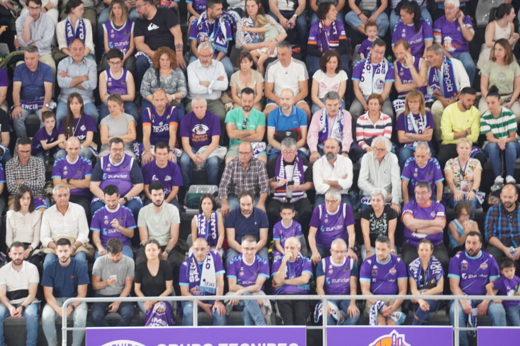 Pero ese preludio del final no se vivió en las gradas con tristeza. Sino con alegría. Cantando la versión baloncestística del himno a Palencia. Luchando cada jugada desde los asientos. Protestando (y mucho) la diferencia de criterio arbitral dependiendo de quien hiciera contacto, los morados o los blancos.