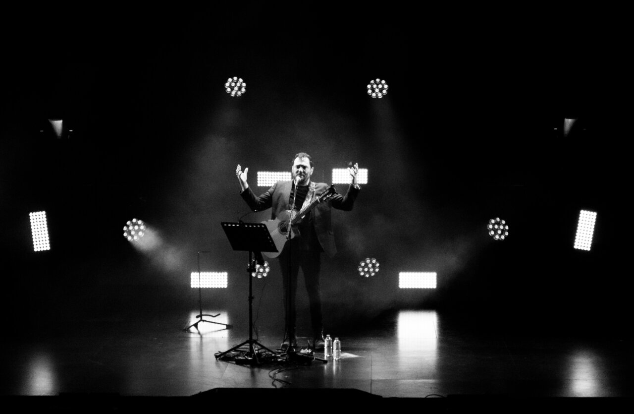 El Teatro Cine Ortega volvió a llenarse este fin de semana con el concierto de Ismael Serrano, que reunió a cientos de personas en Palencia en una actuación que se prolongó durante cerca de dos horas y media. El cantautor madrileño repasó su trayectoria, sus grandes éxitos, en un concierto íntimo en el marco de su gira ‘Guitarra y voz’.