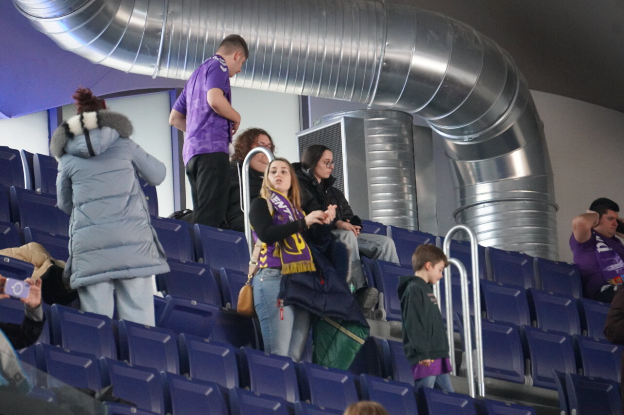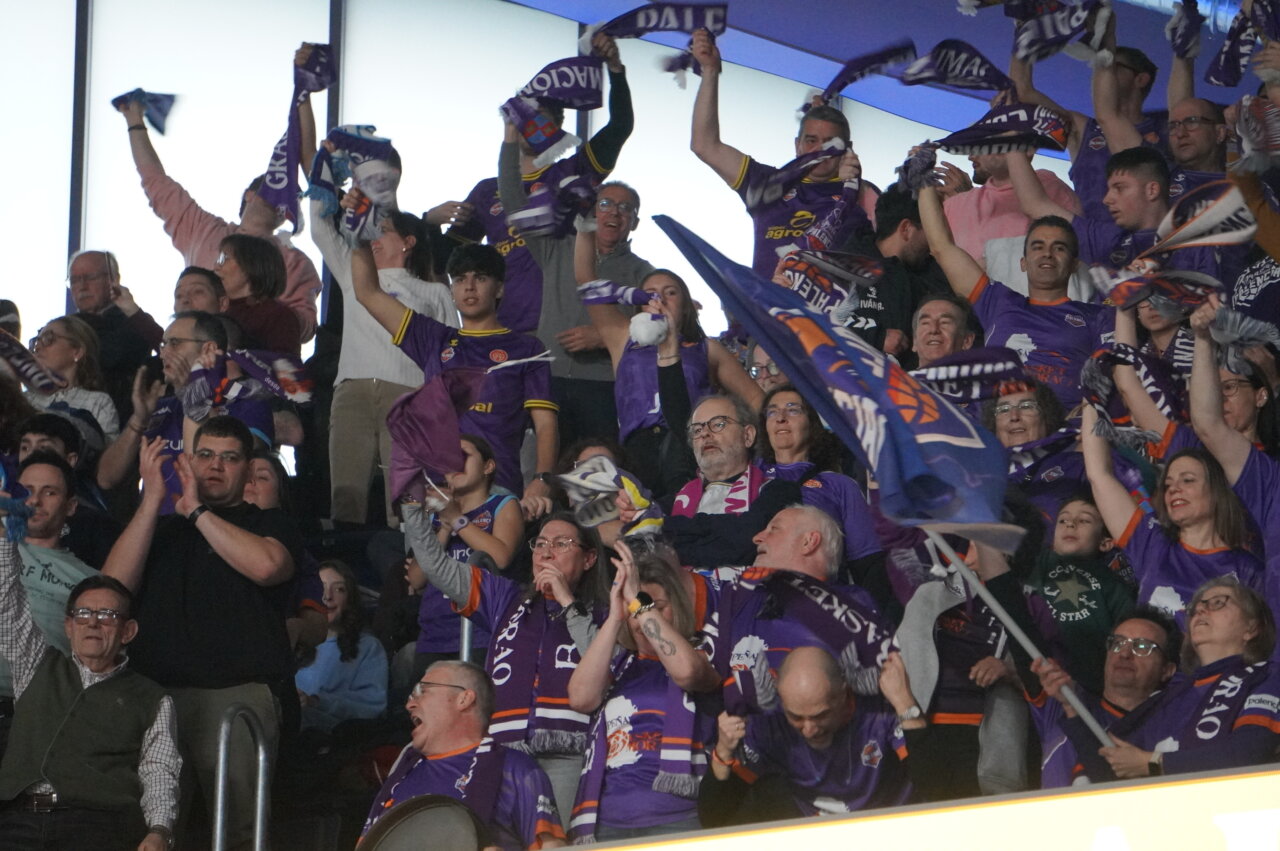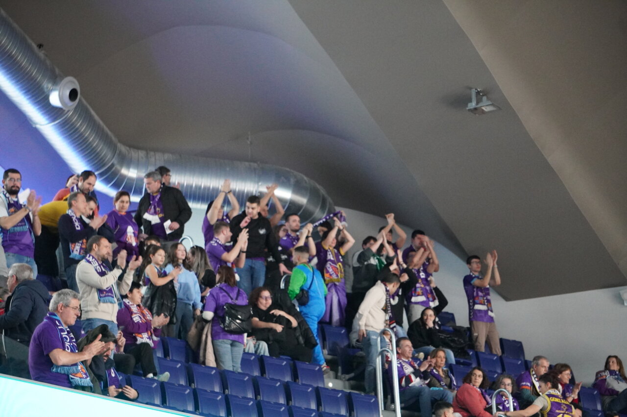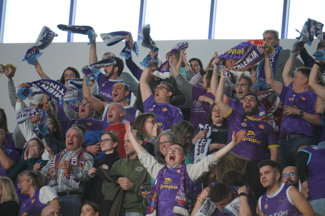 Así, cientos de palentinos llenaron de color morado y de gritos y ánimos palentinos el Palacio de los Deportes de Oviedo. Y al final disfrutaron de la victoria palentina.