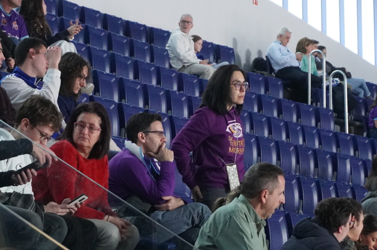 Aficionados en las gradas durante un partido de baloncesto en Palencia.