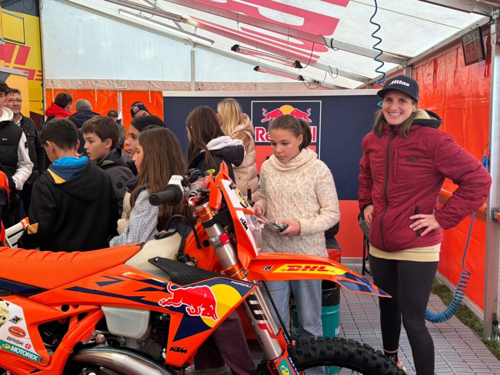 Precisamente, la piloto Sandra Gómez ofreció por la tarde una visita a un grupo de escolares al paddock para conocer los entresijos de las horas previas a las pruebas, así como la función que desempeñan cada miembro del equipo y, no solo la del piloto que es la figura más visible, para preparar la competición.