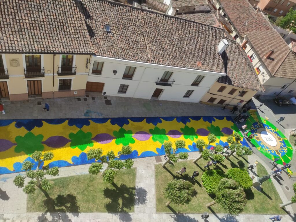 Carrión celebró este domingo el día de Corpus, cumpliendo la tradición de engalanar sus calles con alfombras de flores y otros materiales creando un arte efímero del que están muy orgullosos y que han llevado allende el Atlántico.