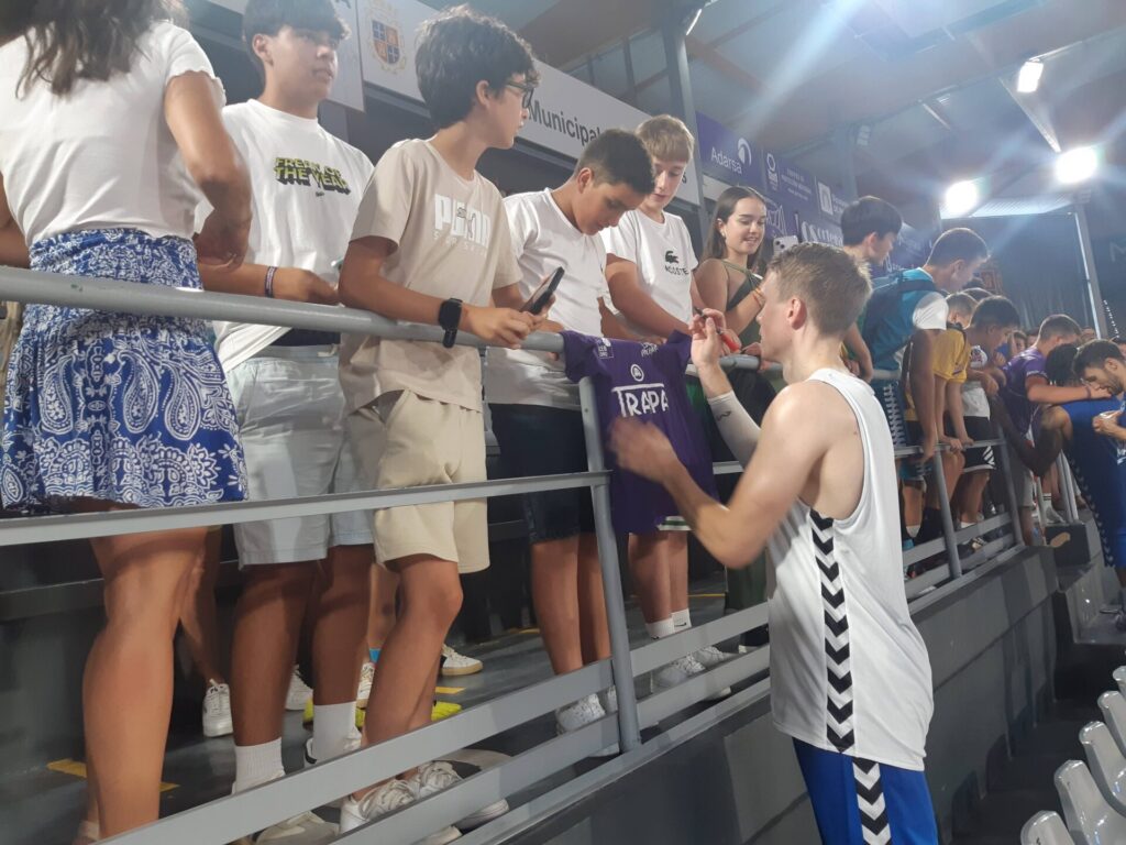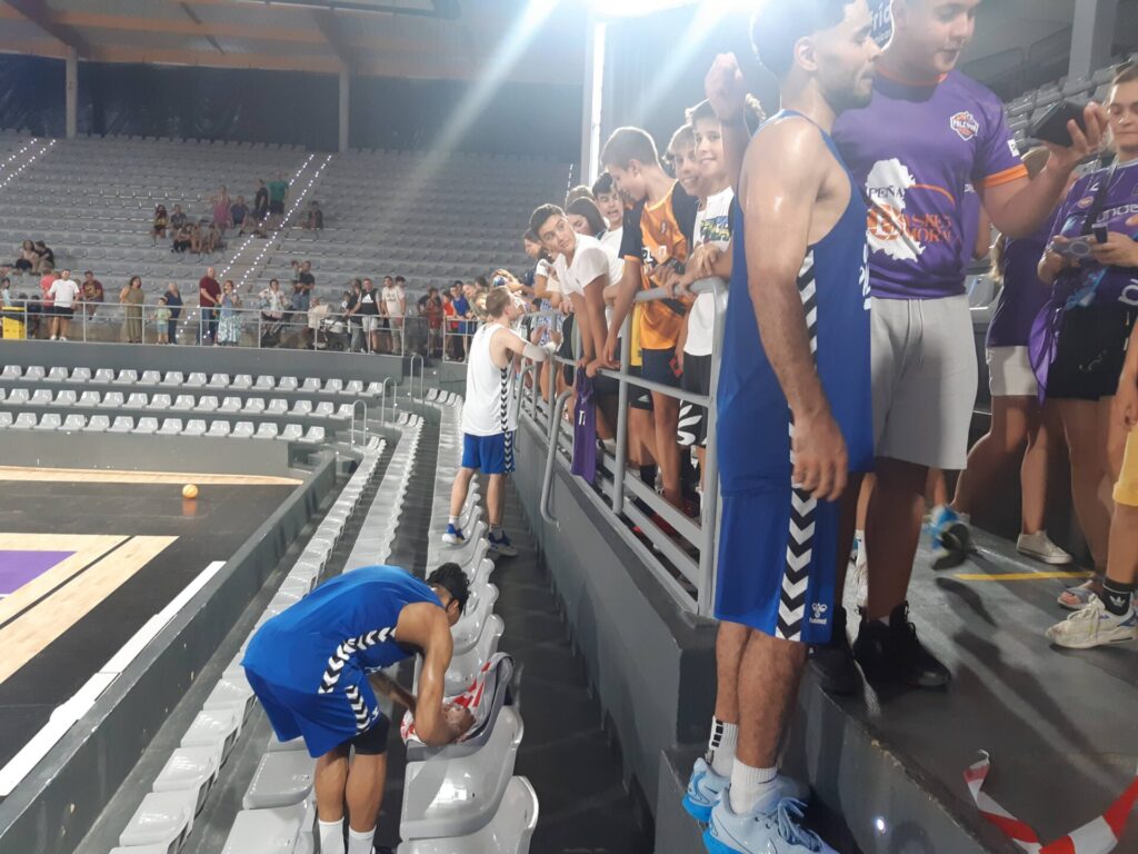 Al final de la parte oficial del entrenamiento, aplausos, vítores para la afición, y acercamiento de algunos jugadores a los aficionados. Destacaron los que llevan más tiempo en Palencia, como Manu Rodríguez, Chema González, Kamba y Wintering, que no dudaron charlar con los niños y adultos. «¿Qué es lo que más te ha gustado del entrenamiento, los triples de Manu?», conversaba Chema con un aficionado.