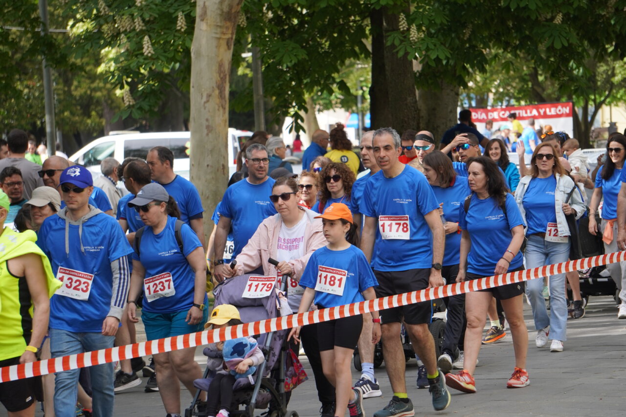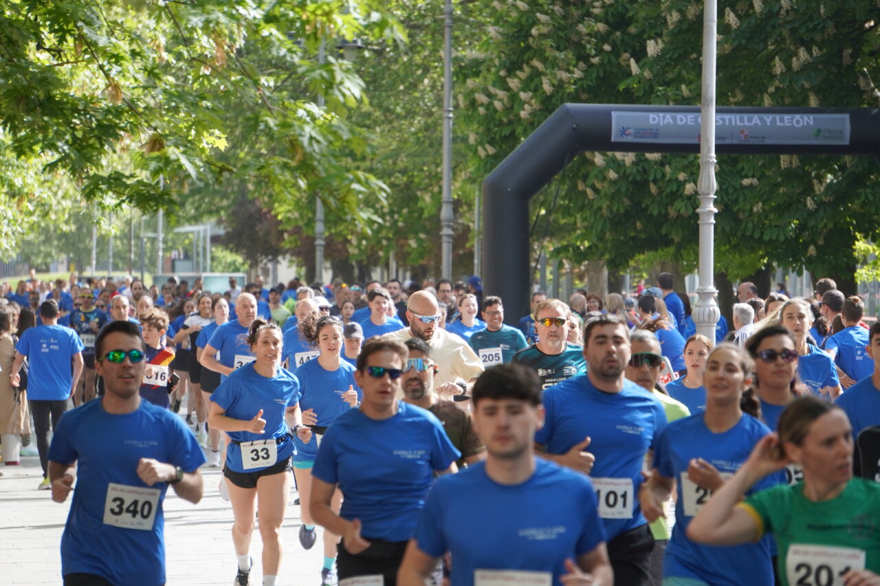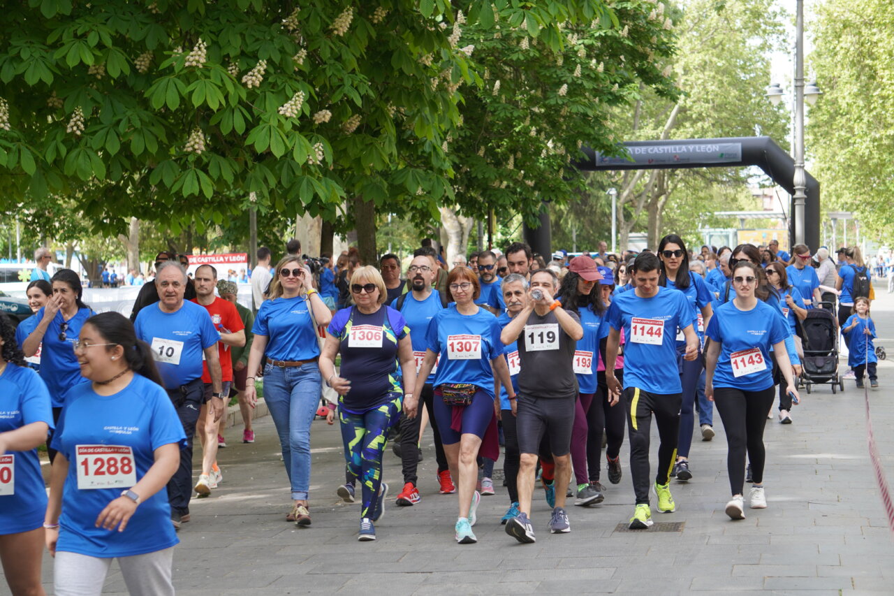 Correr los que podían y querían y andar los que, por las mismas razones, preferían llevar un ritmo menos extenuante. Un buen número de palentinos, alrededor de 900 entre las dos actividades organizadas por la Junta de Castilla y León, una carrera y un paseo, se dieron cita en el Parque del Salón para celebrar la Fiesta de Castilla y León de forma divertida, deportiva y también solidaria.