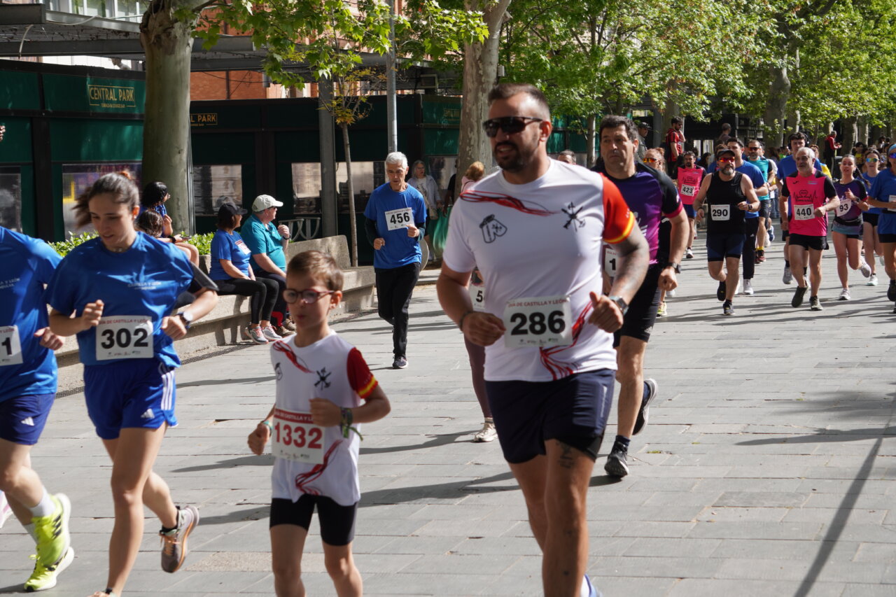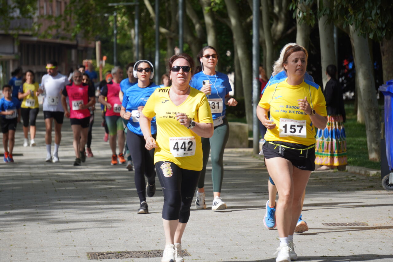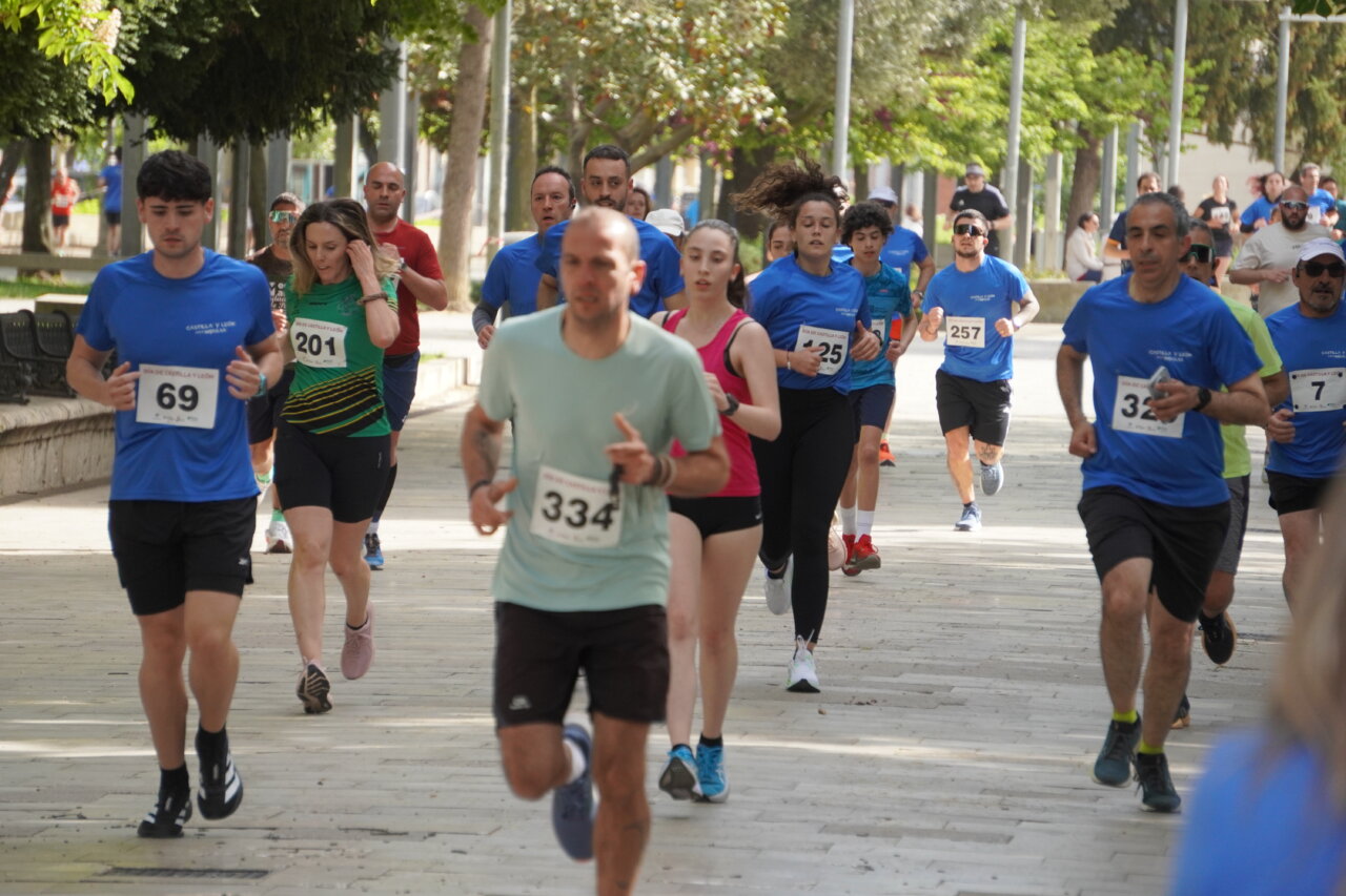 Correr los que podían y querían y andar los que, por las mismas razones, preferían llevar un ritmo menos extenuante. Un buen número de palentinos, alrededor de 900 entre las dos actividades organizadas por la Junta de Castilla y León, una carrera y un paseo, se dieron cita en el Parque del Salón para celebrar la Fiesta de Castilla y León de forma divertida, deportiva y también solidaria.