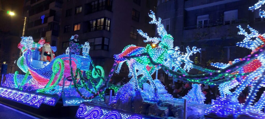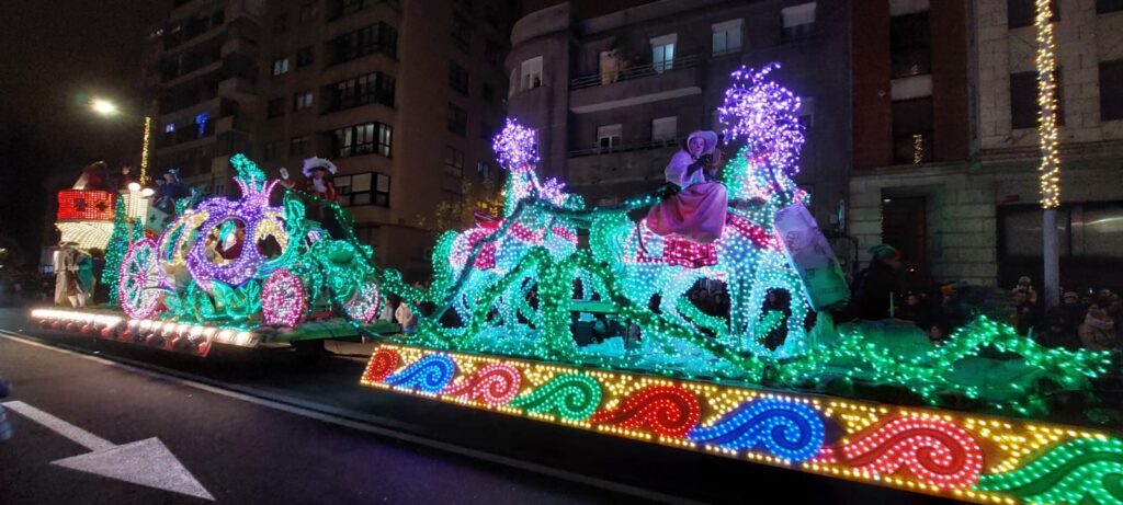Este año Papá Noel ha sorprendido a todos con un espectáculo de luces acompañado por seis carrozas y cuatro elementos móviles, como un impresionante árbol de Navidad, un enorme regalo, un llamativo libro de cuentos y un coche lechero. Estos elementos, junto con cientos de detalles de atrezzo, sumados a la participación de 360 personas entre organizadores, bailarines y gimnastas, han logrado envolver las calles palentinas en una atmósfera mágica durante unos momentos inolvidables.