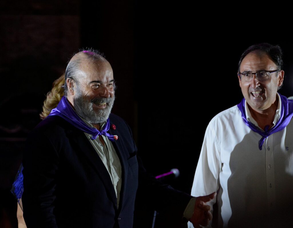 El actor cántabro Antonio Resines ha pronunciado el pregón popular de la fiestas de San Antolín de Palencia, en la imagen junto a la concejal de Fiestas, Laura Lombraña; y el alcalde Mario Simón. / Brágimo (ICAL)