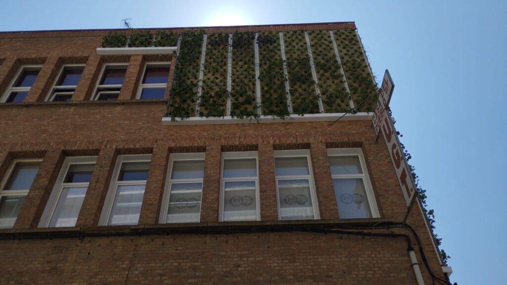 Se trata de un jardín vertical que se ha ubicado en dos caras de la fachada de la Casa del Pueblo, sede del sindicato UGT, y de propiedad del Estado, con quien el Ayuntamiento ha tenido que llegar a un acuerdo.