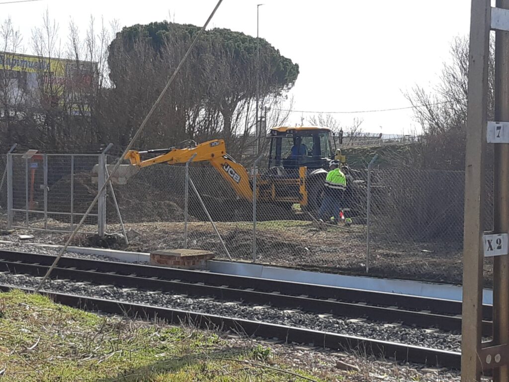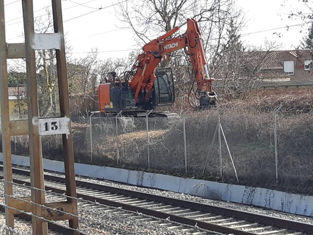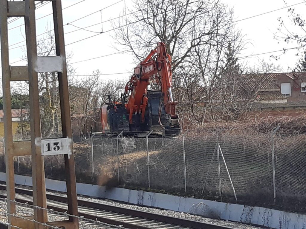 Pero desde hoy, las máquinas ya se han puesto a trabajar. Inicialmente para despejar el camino y limpiar de maleza el terreno por donde se ensanchará la plataforma ferroviaria. Una trabajo de desbroce que permite apreciar dónde existen infraestructuras como pozos de riego que ahora estaban ocultas por la maleza.