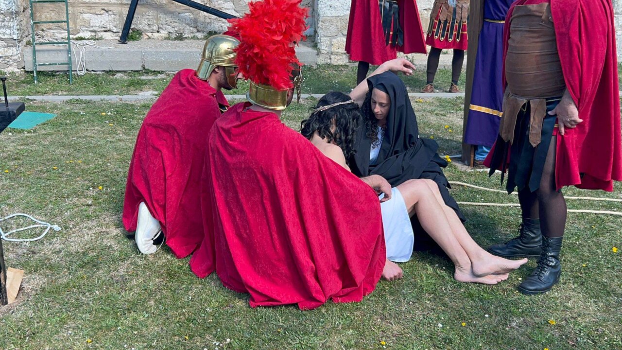 Decenas de personas de todas las edades participan en esta representación de la Pasión de Cristo, con música y escenificaciones de las diferentes estaciones del Via Crucis, en los entornos de la iglesia de la Santa Cruz. Figurantes que reviven momentos como la Condena de Jesús a muerte hasta la Crucifixión, la carga de la cruz, la primera caída, el encuentro con María, Simón ayudando a lleva rla cruz, la Verónica, la segunda caída, el consuelo a las hijas de Jerusalén, la tercera caída y el despojo de las vestiduras. Todo ello en una atmósfera impregnada de emotividad y reflexión en una escenificación que se realiza en la villa terracampina desde hace casi dos décadas.
