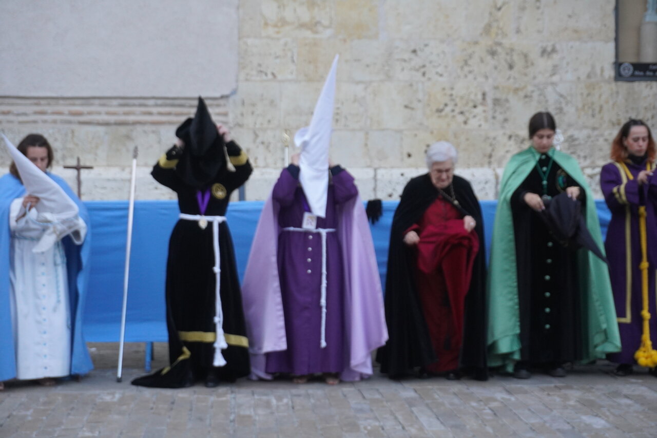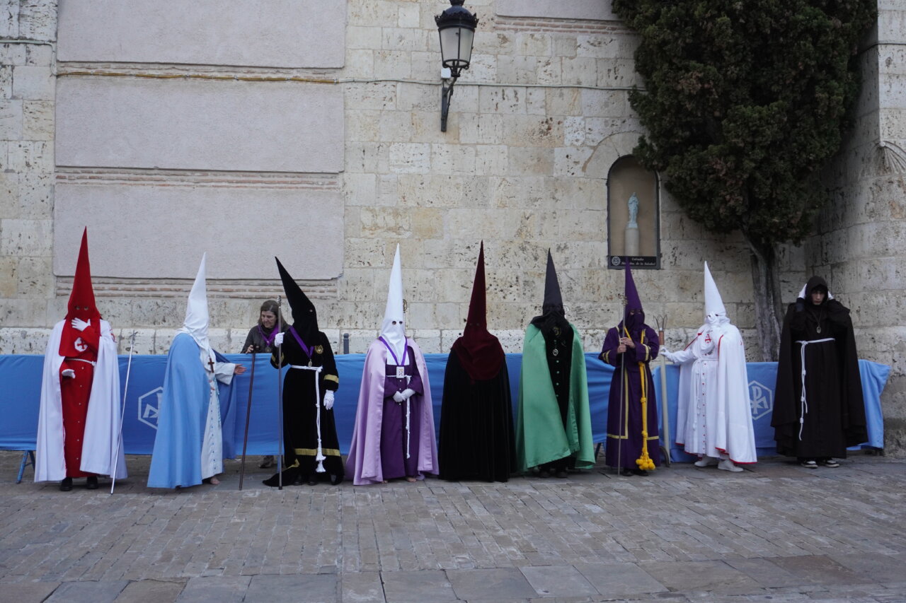 Con solemnidad, en una ceremonia con aire de poesía, el acto de vestición abría este Lunes Santo la Procesión de las Cinco Llagas, la pirmera de las procesiones más simbólicas de la Semana Santa Palentina, ya con los cofrades ocultos bajo el capirote, caminando despacio al toque del tararú y la caja.